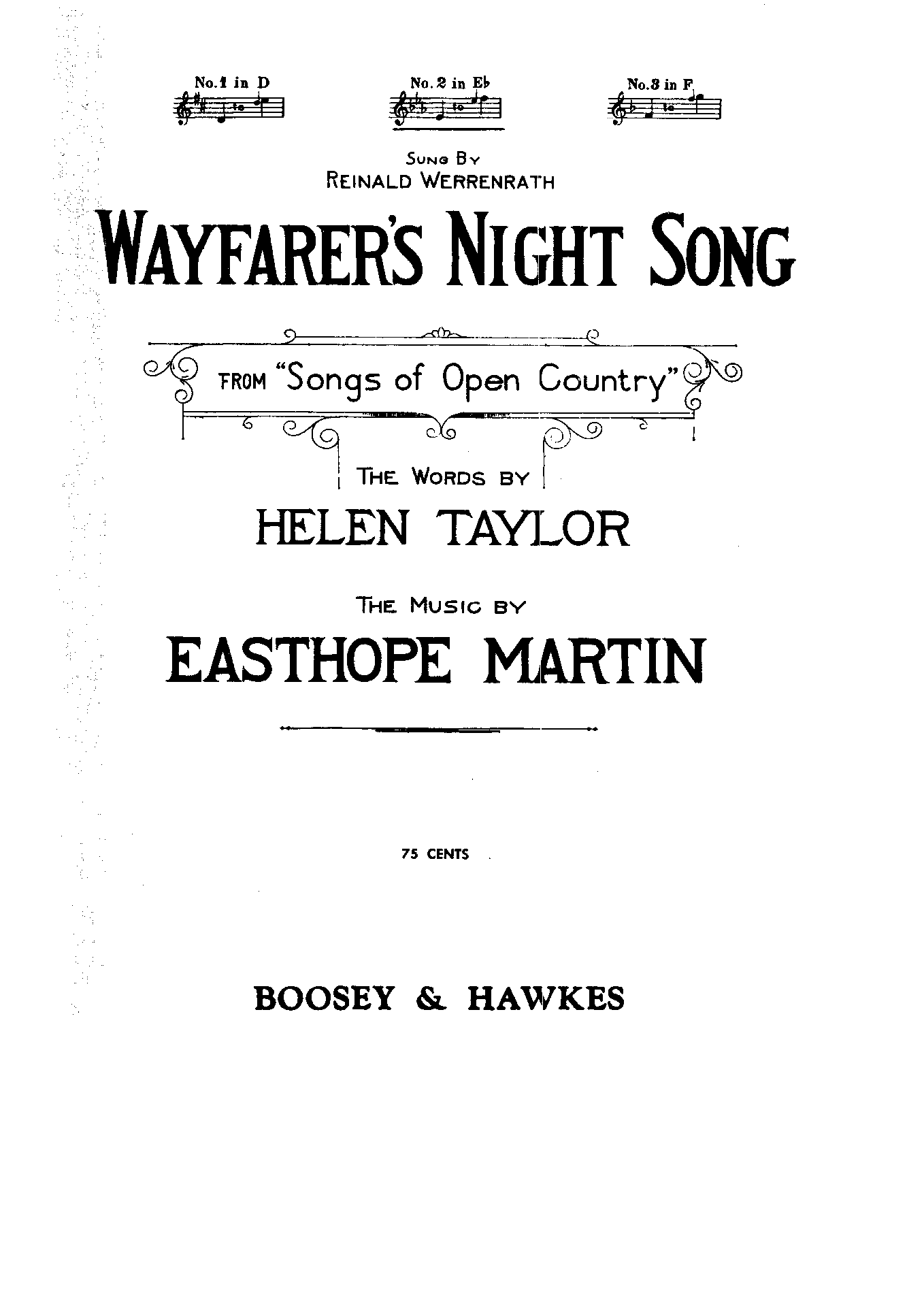 | Genre Categories | Songs; For voice, piano; For voices with keyboard; |