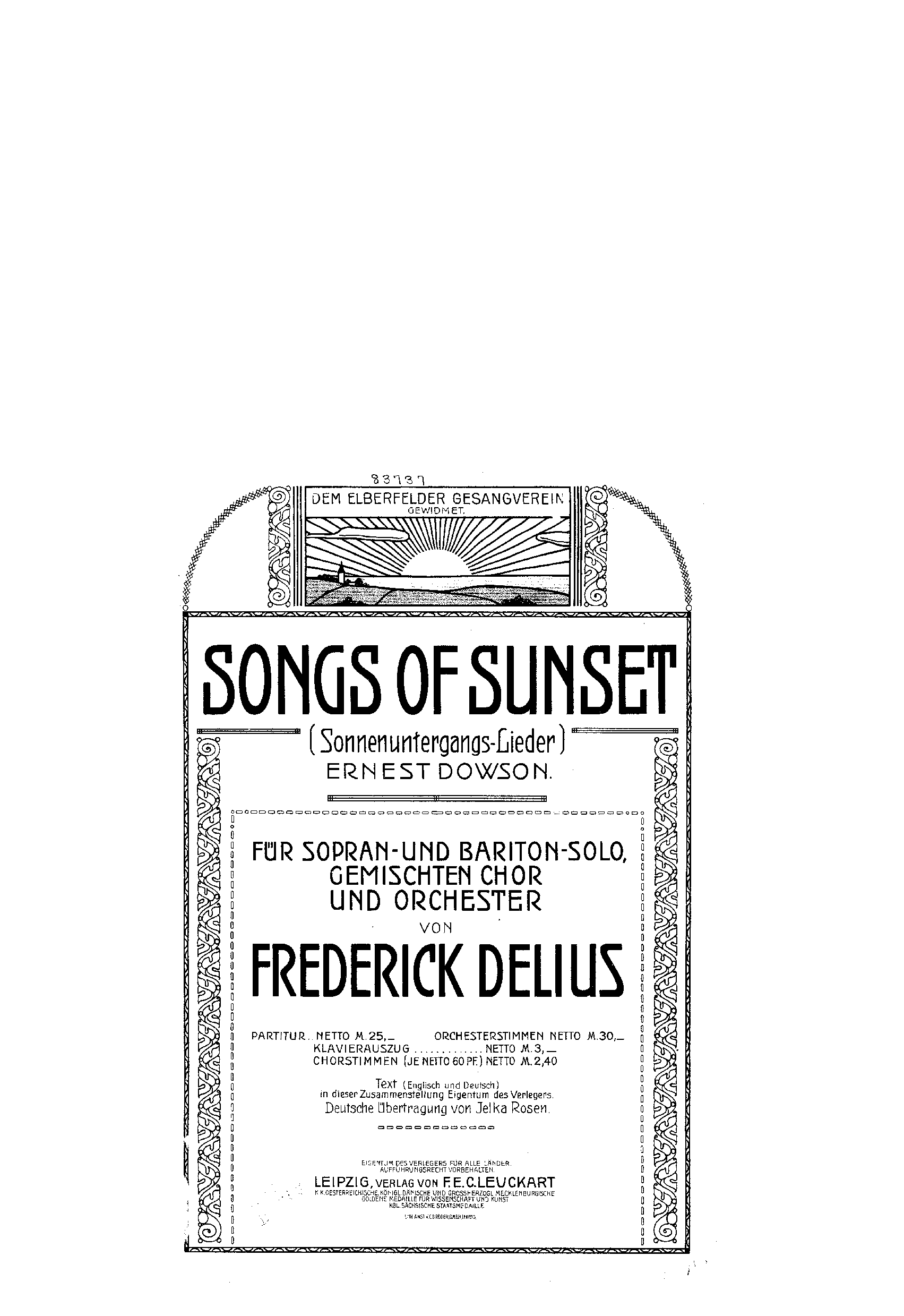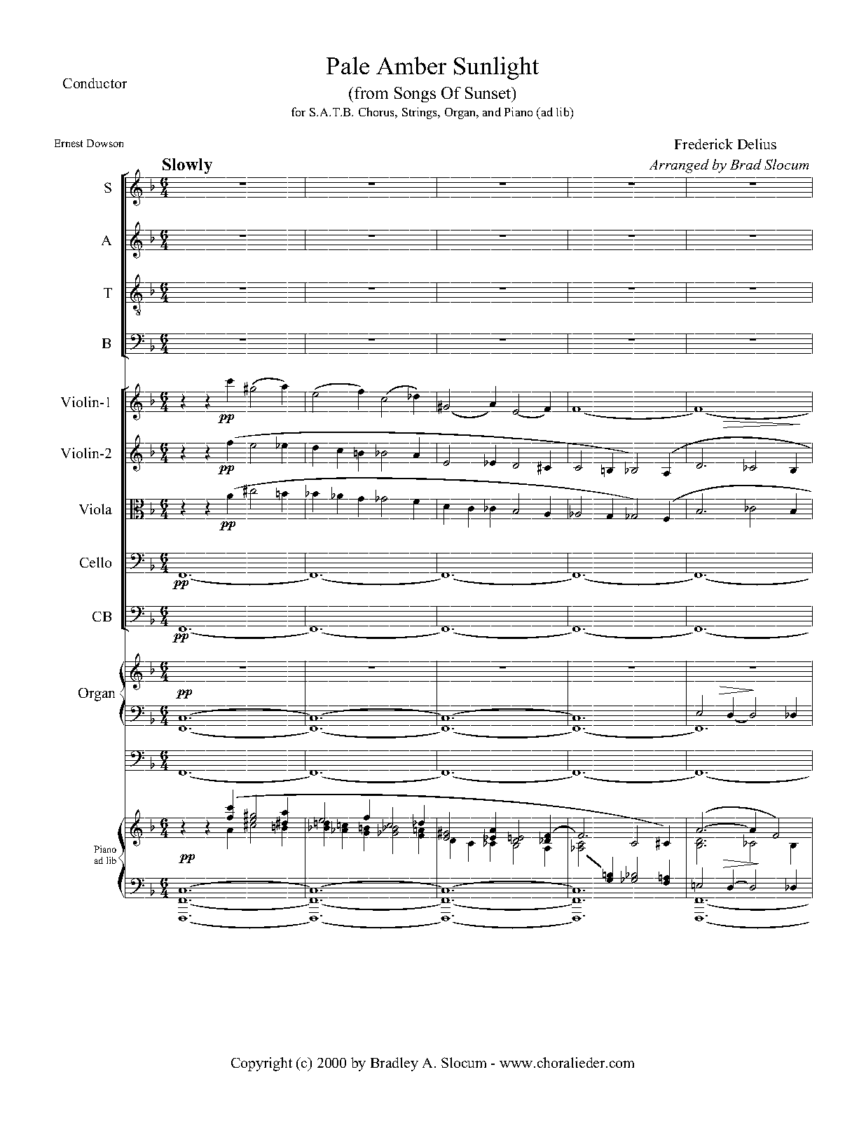 Orchestra: Flutes, oboe, English horn, Bass oboe, Clari[o]nets in B♭, Bassoons, Sarrusophone, Horns in F, Trumpets in C, Tenor Trombones, Bass Tuba, Triangle, Drums, Harp, Strings