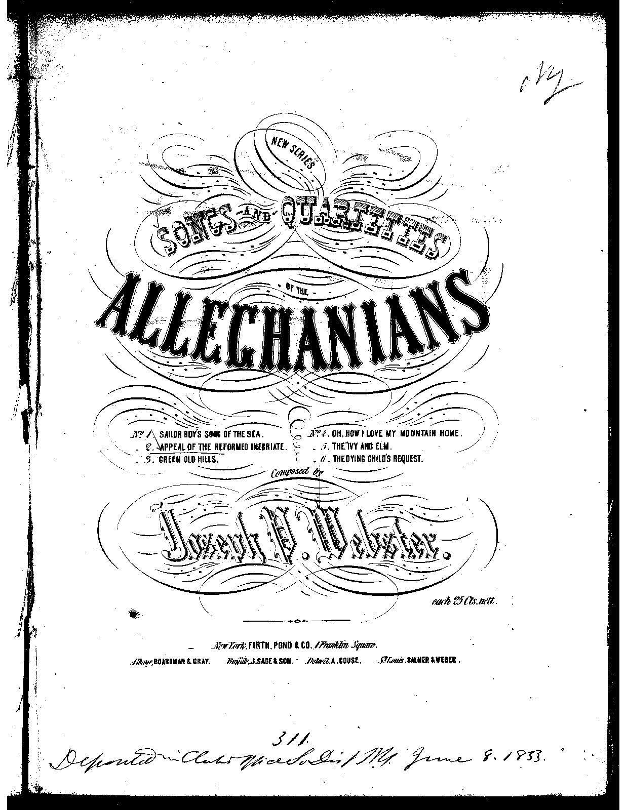Songs and Quartettes of the Alleghanians Songs and Quartets of the Alleghanians contains first 6 of this series. -Sissel No.3 has echoes of "The Star-Spangled Banner" in it.