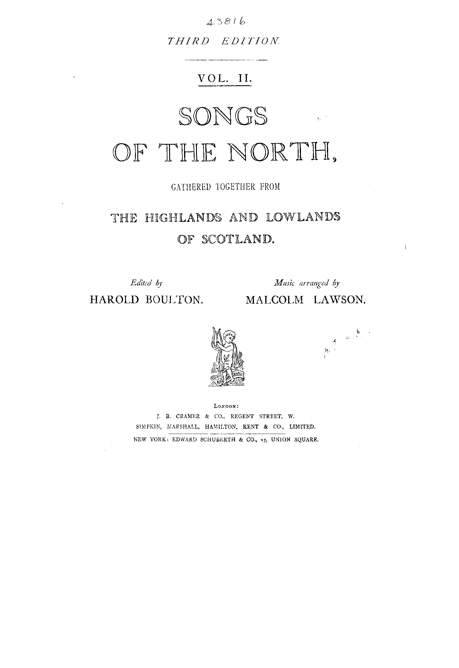 | Alternative. Title | Songs of the North, gathered together from the highlands and lowlands of Scotland |