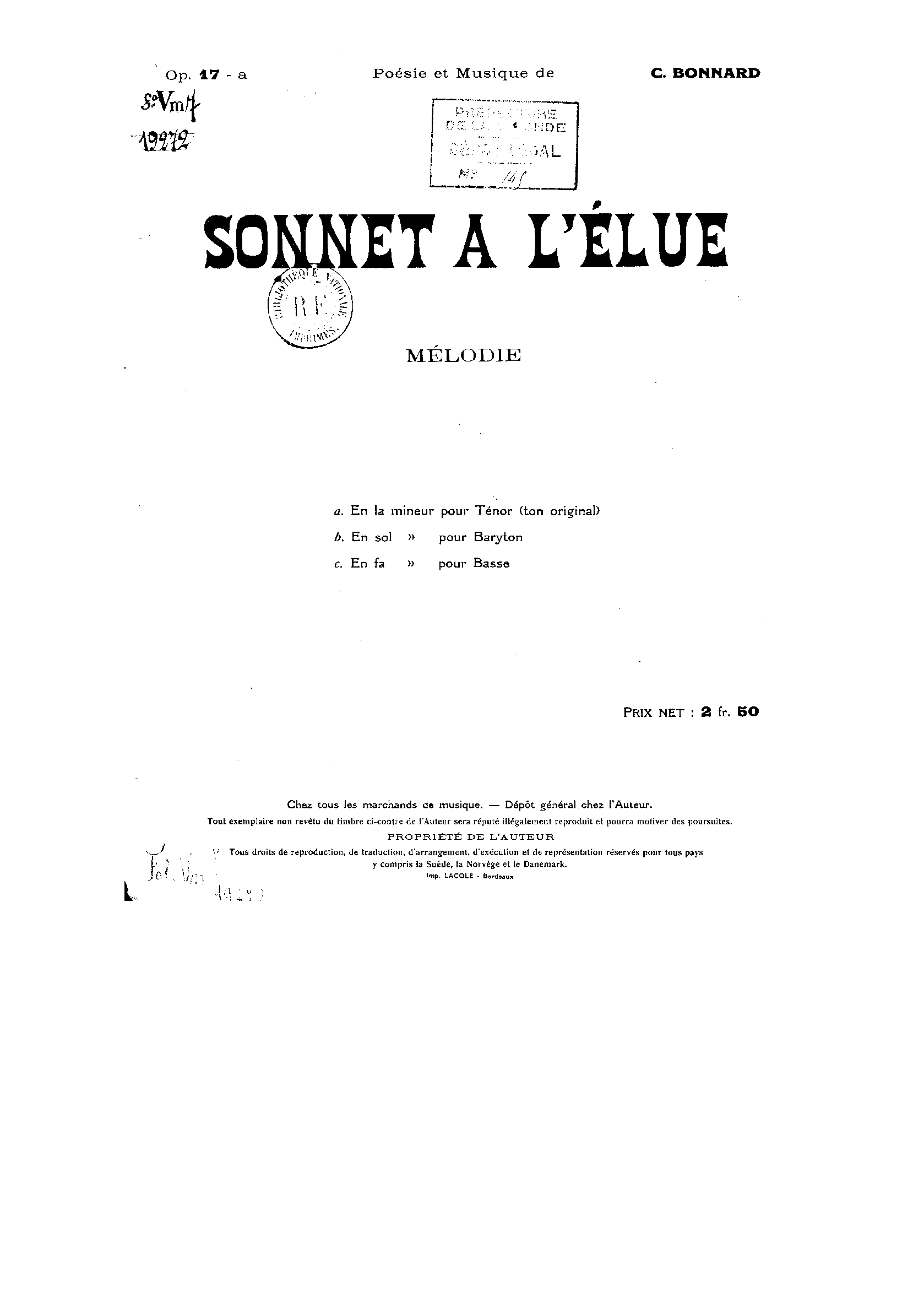 | Genre Categories | Melodies; Songs; For voice, piano; |