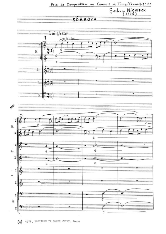 | Extra Information | Second Prize at the Composition Competition 'Rencontres Internationales de Chant Choral', Tours (France), 1977 |