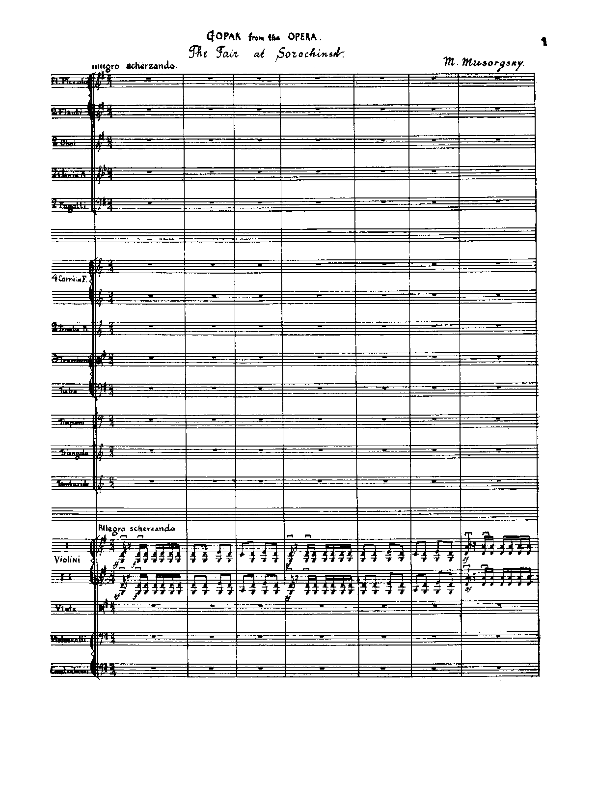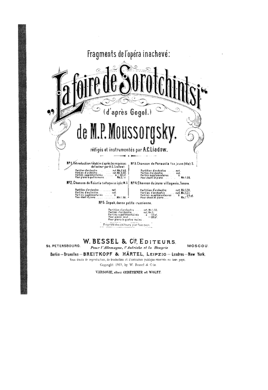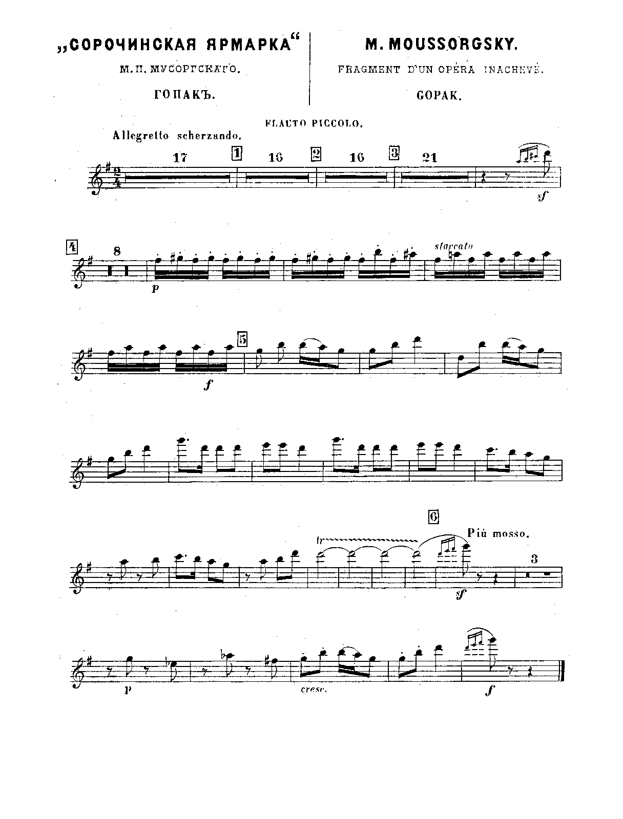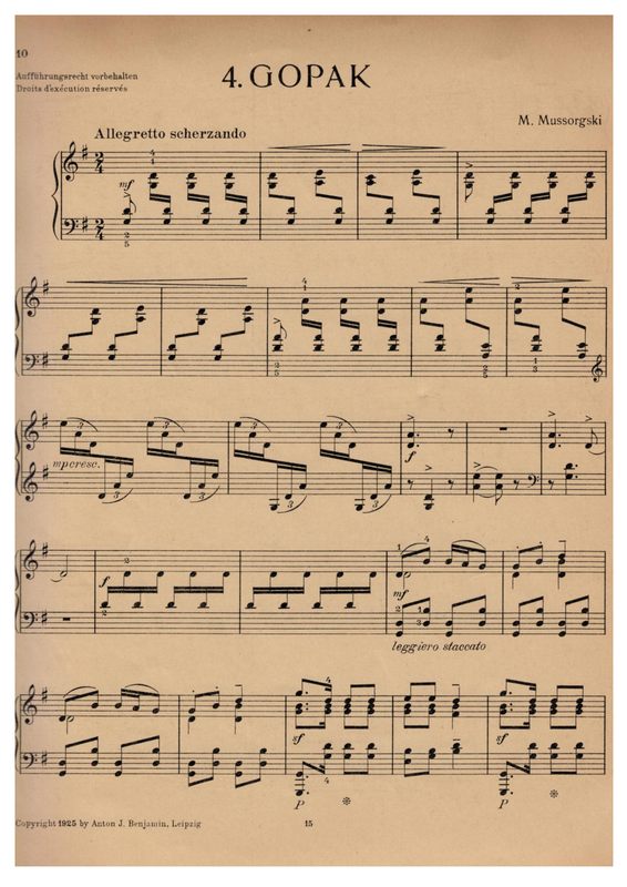 Musorgsky arranged the Fair Scene and Hopak for solo piano.