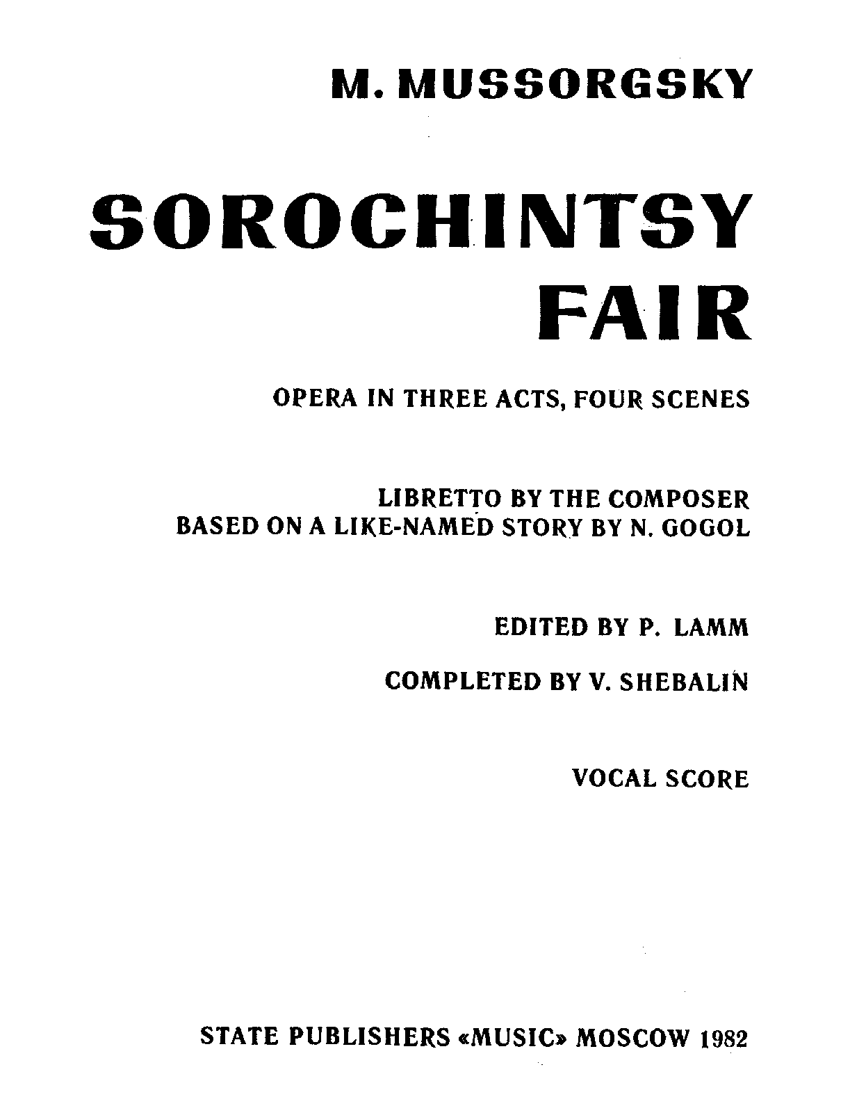 Sorochyntsi was Nikolay Gogol's birthplace, but was known to Mussorgsky by its Russian name of Sorochinsk.