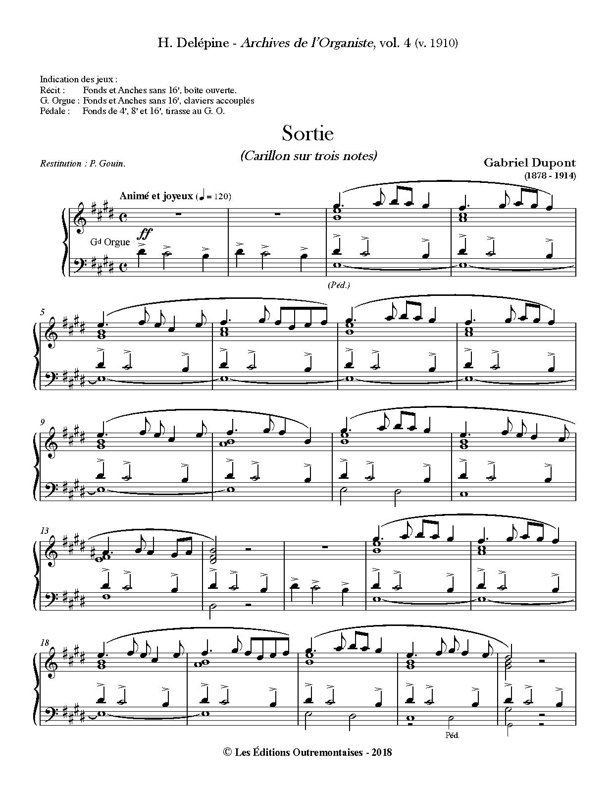 1910 ca. in Henri Delépine, Archives de l'Organiste, vol. 4, Arras