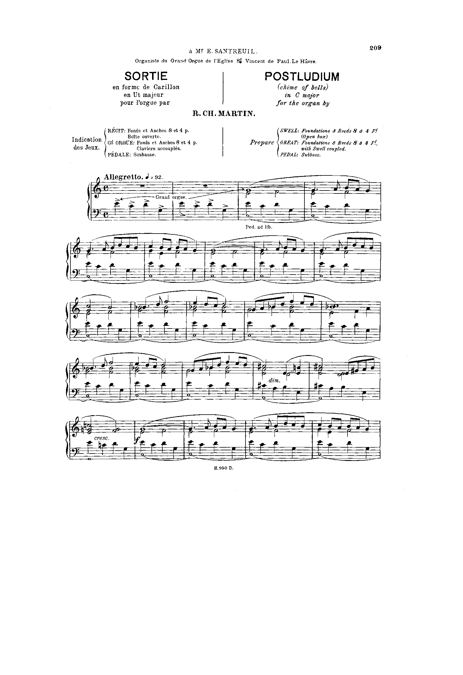 | Dedication | à Mr. E. Santreuil, organiste du Grand Orgue de l'Église St Vincent de Paul, Le Hâvre |