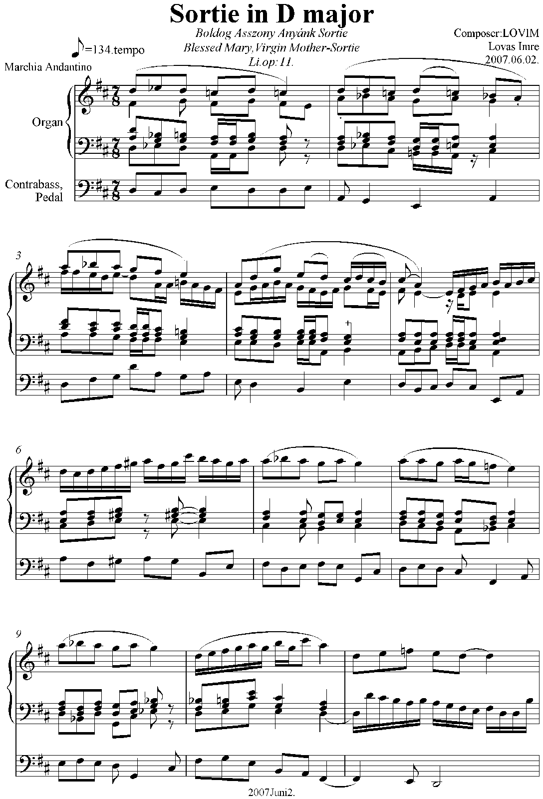 | Work Title | Sortie D major. Li.op.11. |