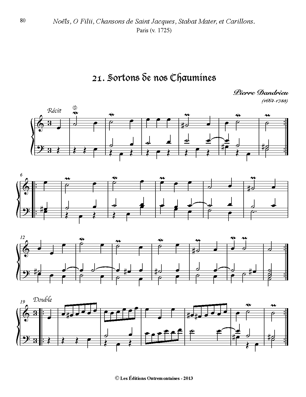 | First Publication. | 1733 in Noëls, O filii, chansons de Saint-Jacques, Stabat mater, et carillons (No.21) or before* |