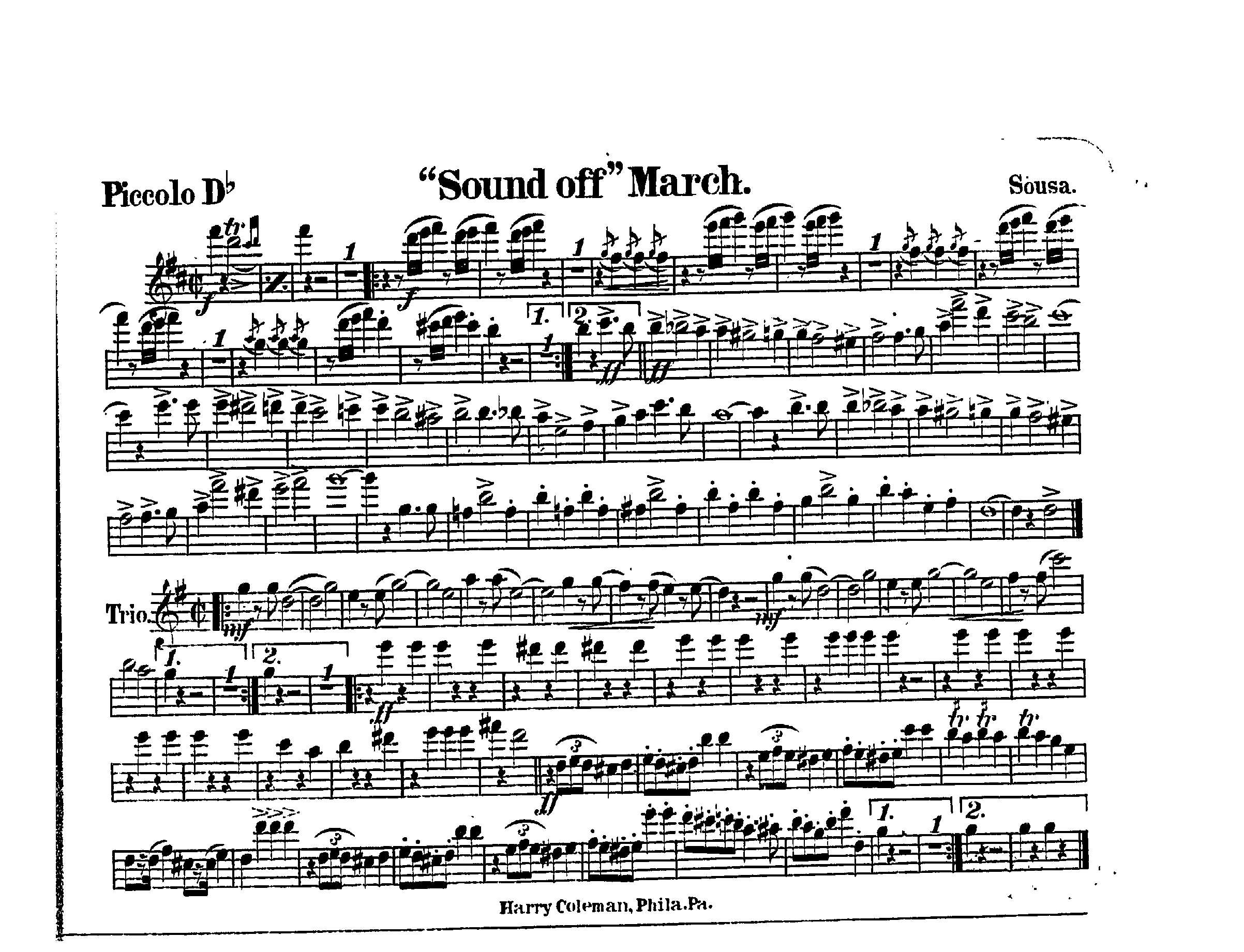 Nearly all of Sousa's marches were issued simultaneously in versions for Band, Orchestra, and Piano solo.
