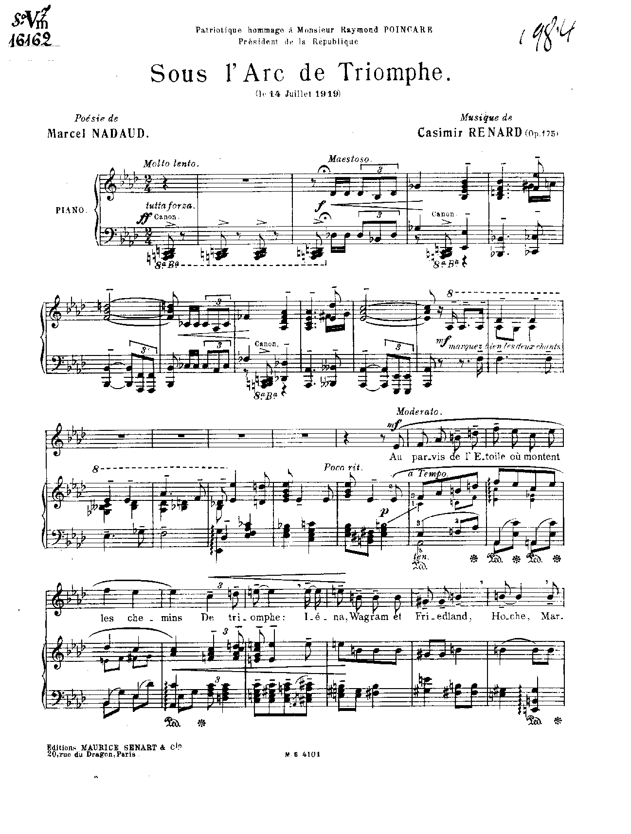 | Dedication | Patriotique hommage à Monsieur Raymond Poincarr, Président de la République |