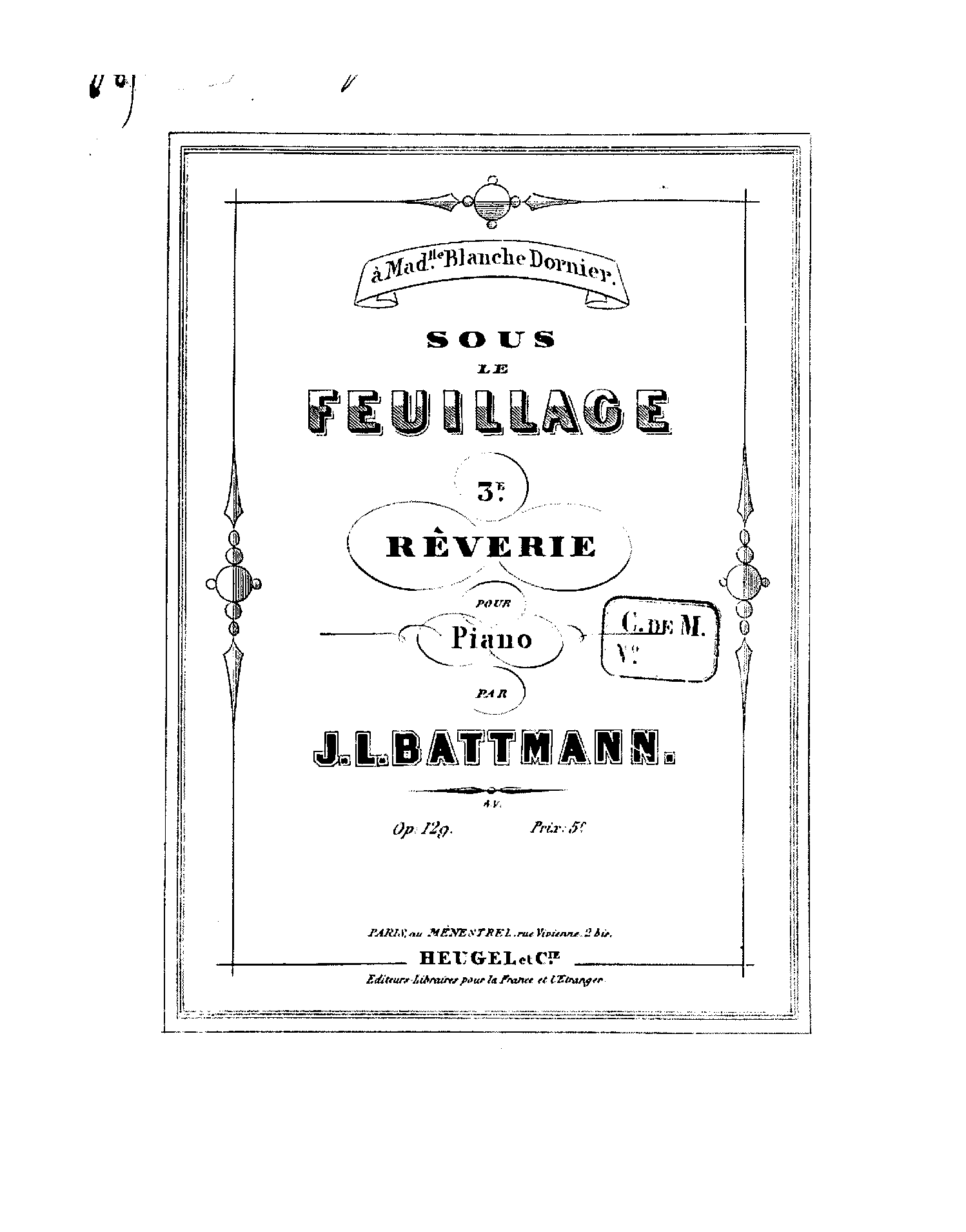 | Dedication | à Mademoiselle Blanche Dornier |