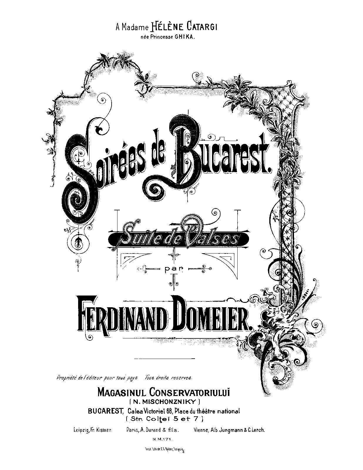 | Dedication | A Madame Helene Catargi nee Princesse Ghika |