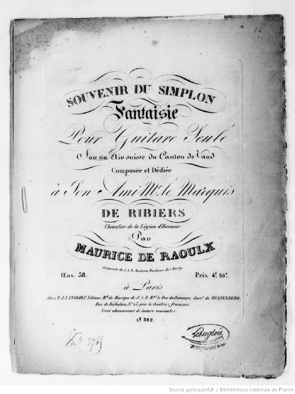| Alternative. Title | Fantaisie pour Guitare seule sur un air Suisse du canton de Vaud |