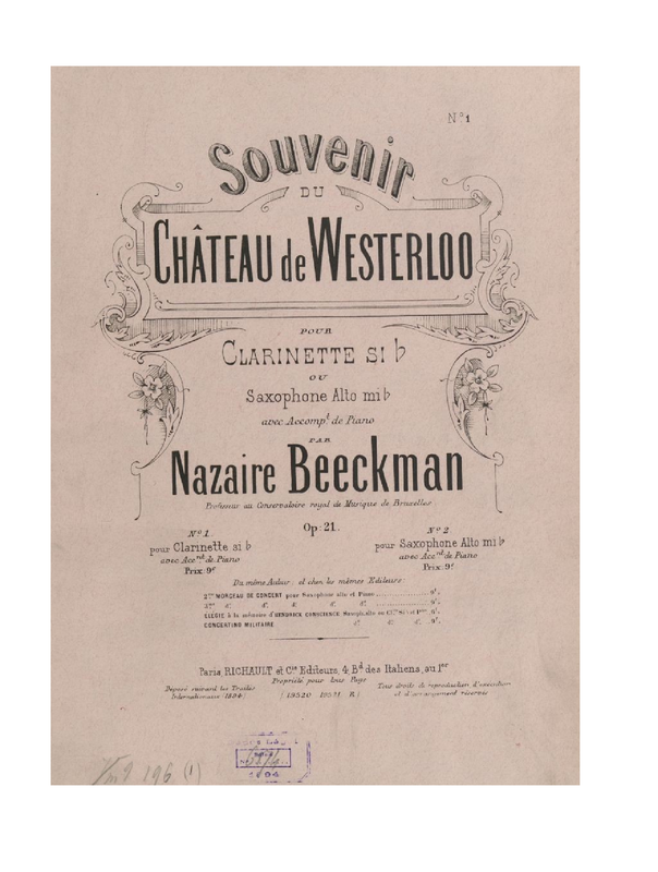 | Genre Categories | Pieces; For clarinet, piano; Scores featuring the clarinet; |