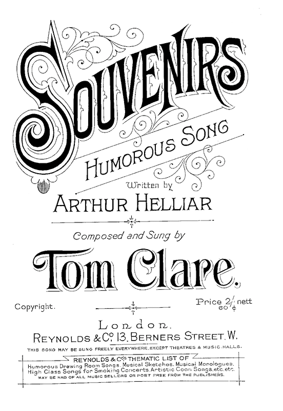 | Extra Information | A humorous ditty about the things you remember from bad situations. Broken arms, headaches and fake Waterloo medals made in Birmingham! Beautiful music for such a light-hearted ditty! (A. B. C. = Aerated Bread Company.) They were a revolutionary brand of tea rooms, mocked by many at the time for their reliance on industrialisation and lack of fresh food apparently. |