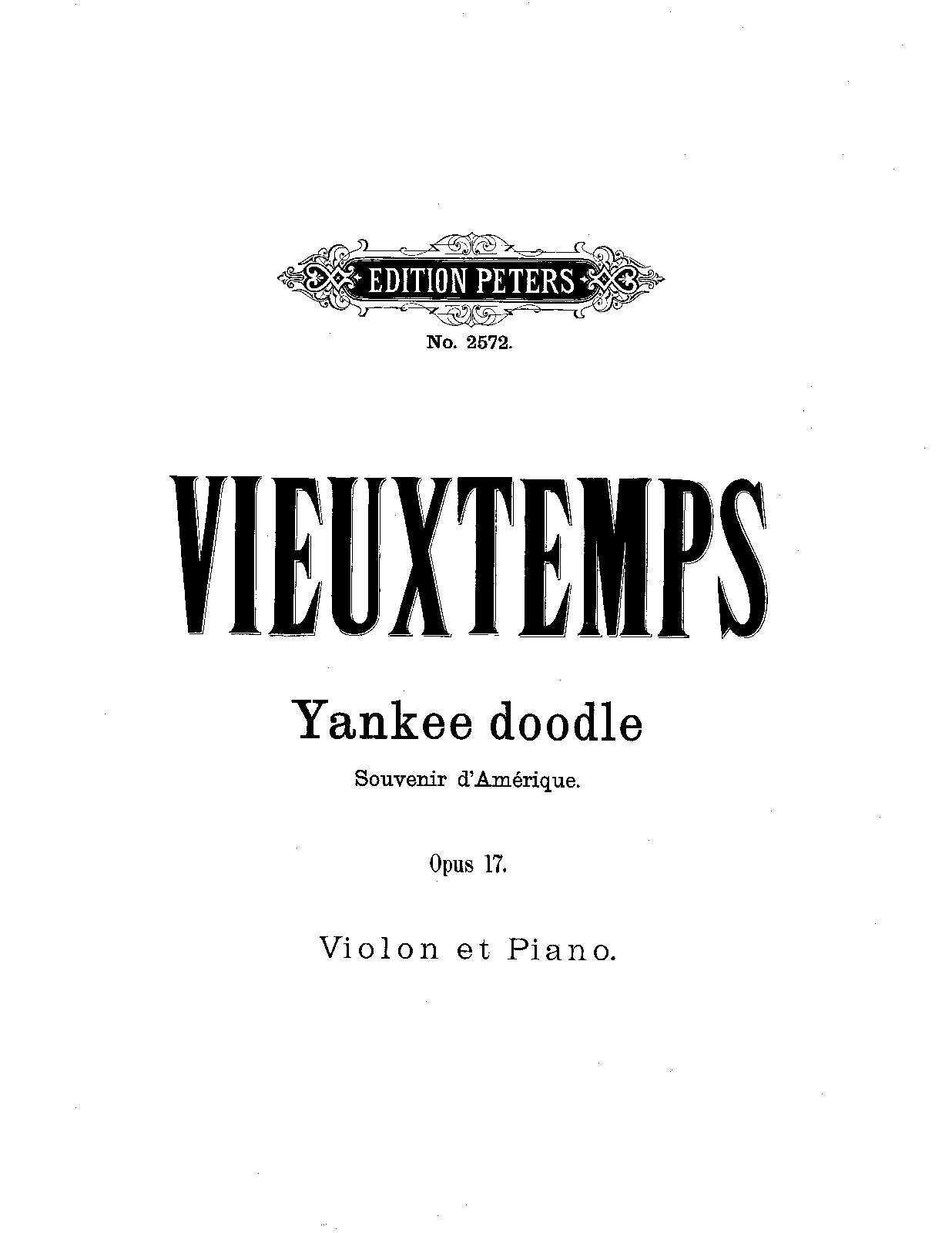 According to Boris Schwarz and Sarah Hibberd in in the article on Vieuxtemps in Grove Music Online, Souvenir d’Amérique, on ‘Yankee Doodle’, op. 17, was published in Leipzig and London, c. 1845.