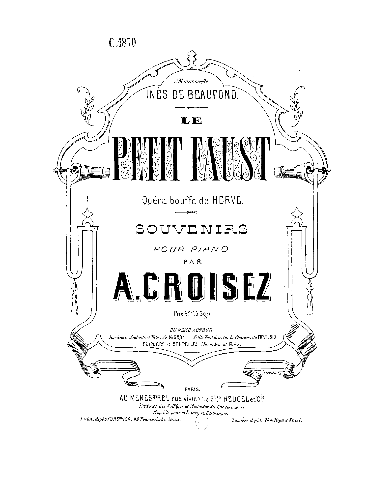 Le petit Faust. Opéra-bouffe d'Hervé. Souvenirs pour piano