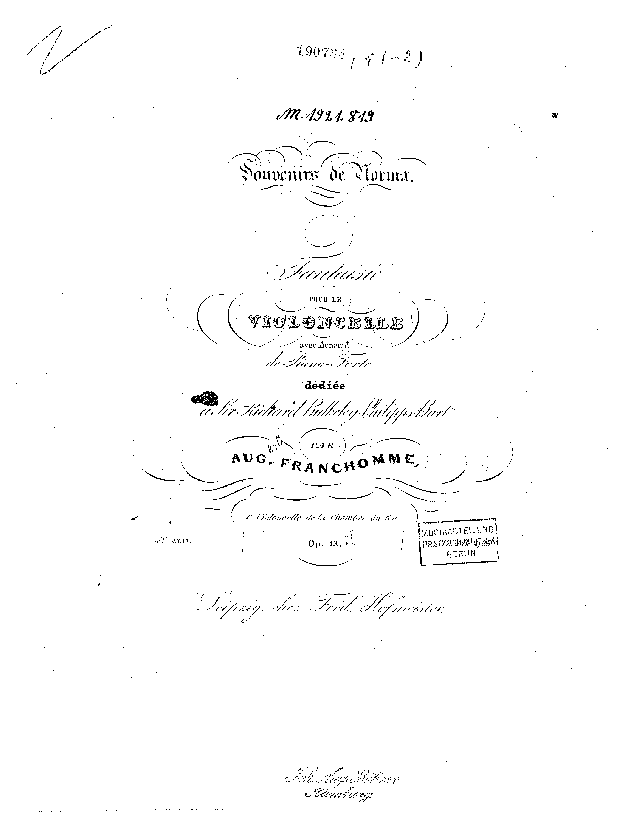 | Alternative. Title | Fantaisie pour le Violoncelle avec Accompagnement de Piano-Forte |
