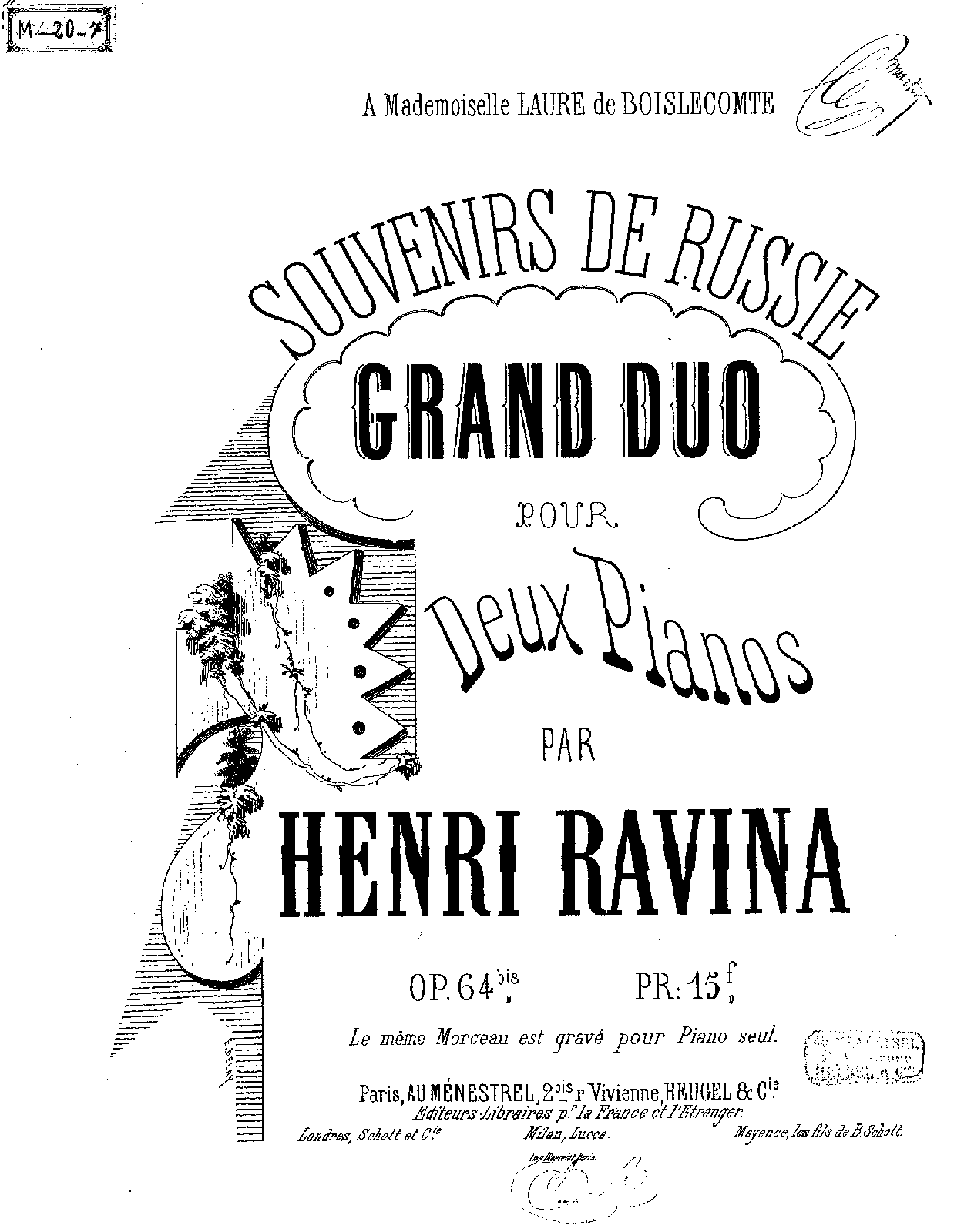 Paris: Heugel, n.d.[1869]. Plate H.R.18(2).