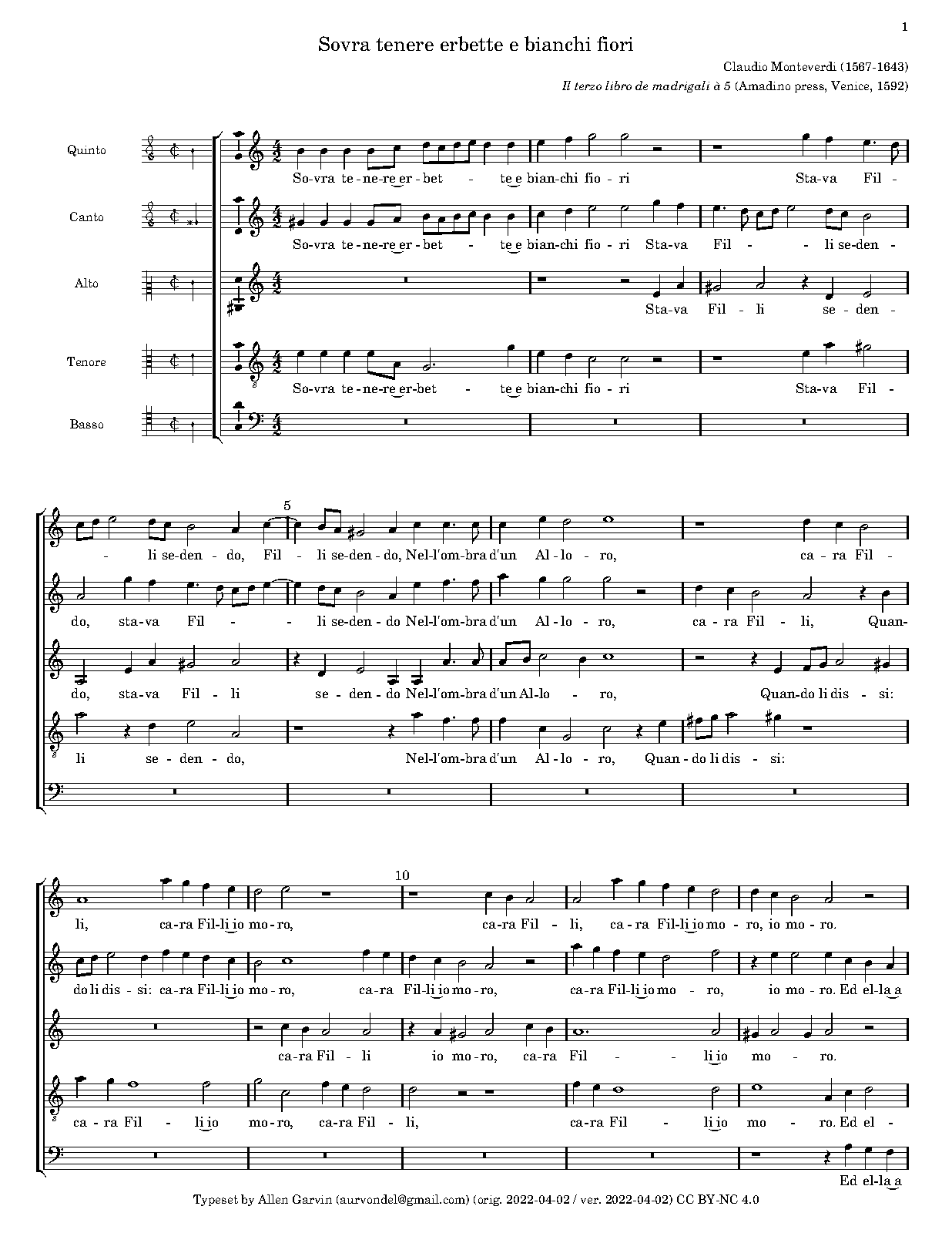 | First Publication | 1592 in Il Terzo libro di Madgrali (No.3) |
