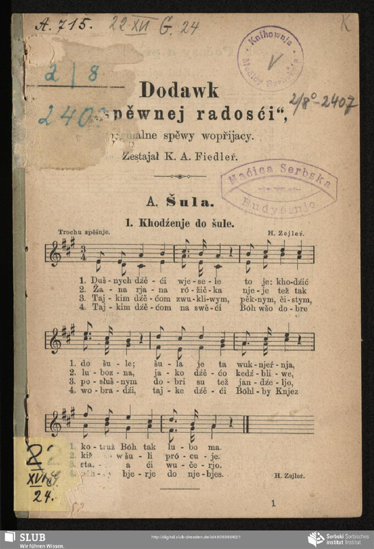 - 46. (Composer not specified): Aufforderung zur Fröhlichkeit / Wabjenje k radosći (translation: Korla Awgust Fiedleŕ)