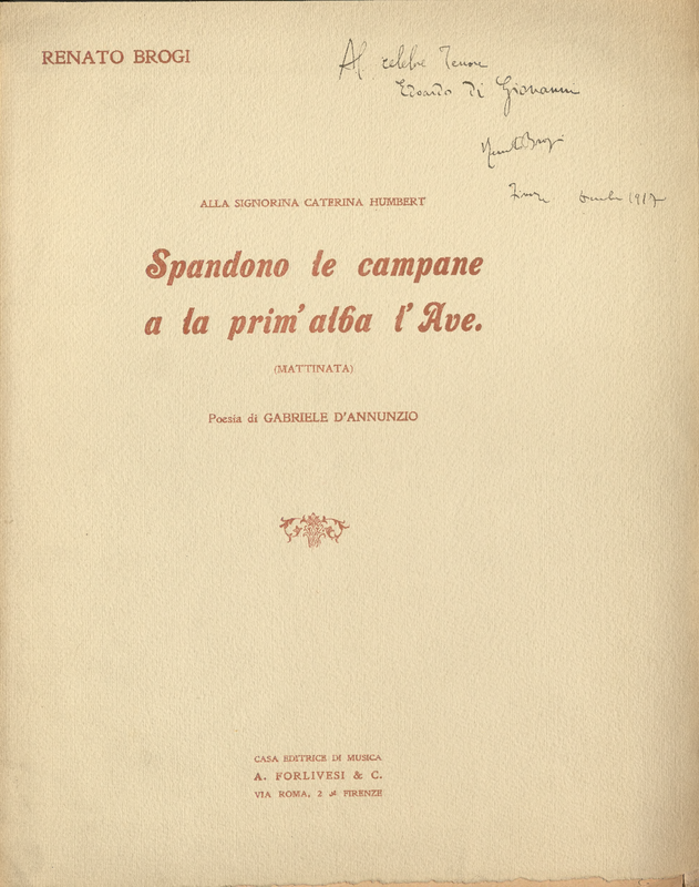 | Extra Information | Item is autographed by the composer for Edoardo di Giovanni (Edward Johnson), dated 1917 in Firenze (Florence) |