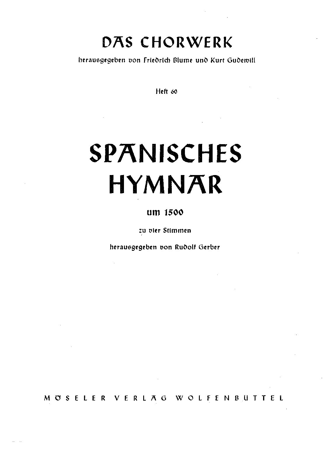 Das Chorwerk, Vol. 60 Wolfenbüttel: Möseler, n.d.[1957]. No Plate Number.