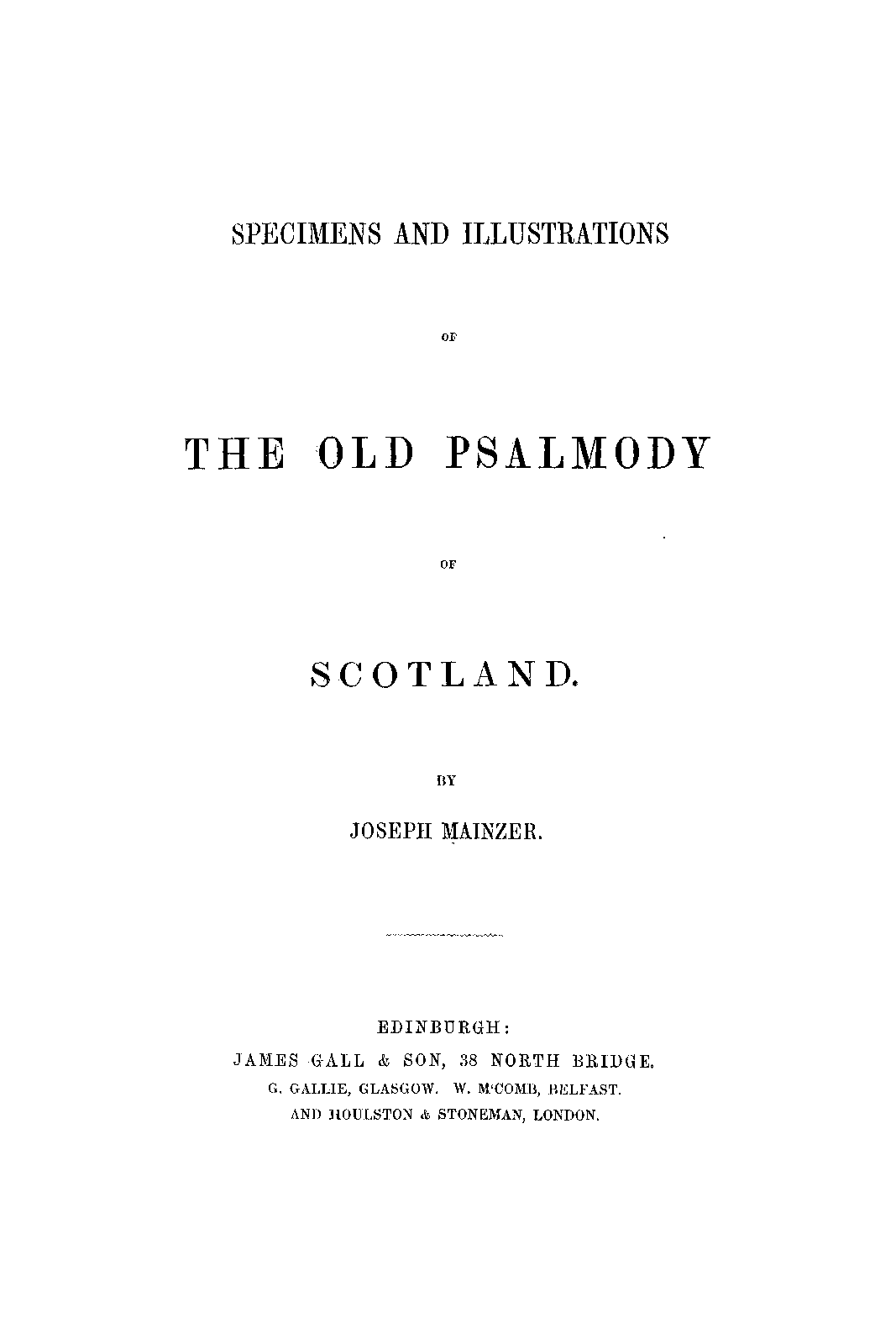 | Work Title | Specimens and Illustrations of the Old Psalmody of Scotland |
