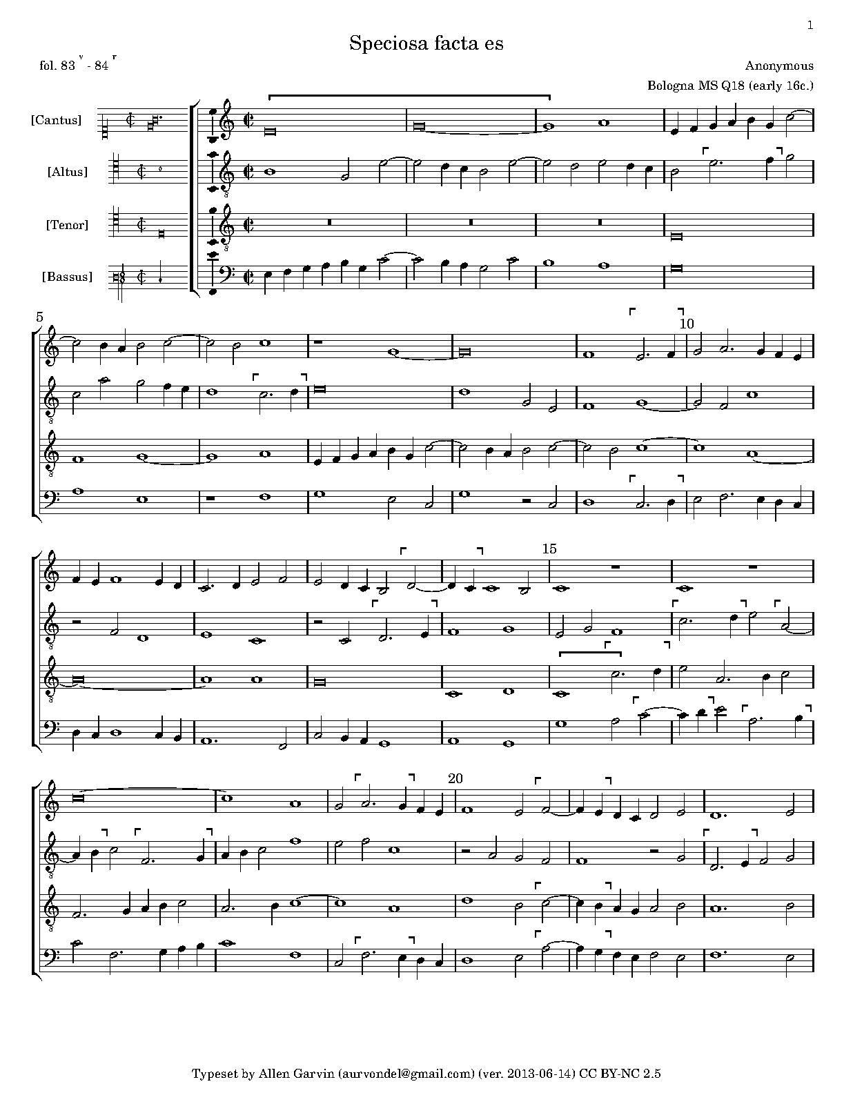 This untexted motet survives only in Bologna MS Q18 with the incipit "Speciosa".