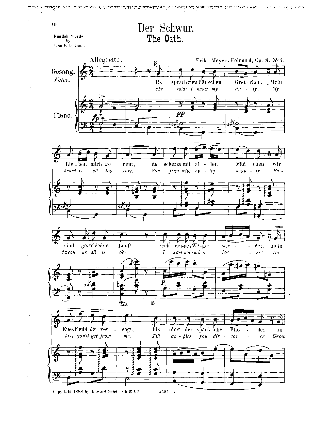 15 Lieder von Erik Meyer-Helmund. New York: Edward Schuberth & Co., 1888. Plate 2594 A.