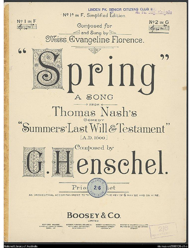 | Genre Categories | Songs; For voice, piano; For voices with keyboard; |