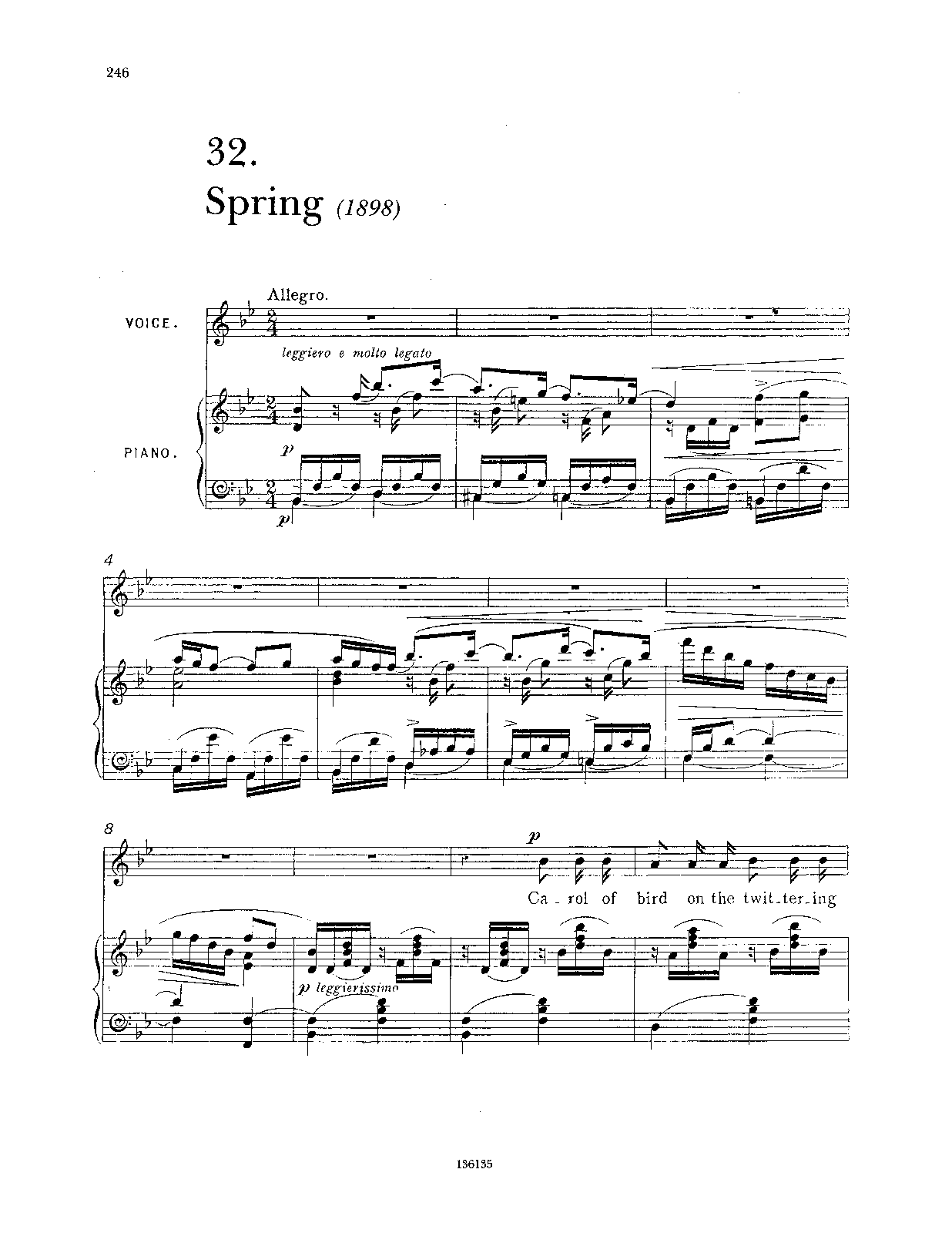 The song was republished in 1915 in a new edition with a completely rewritten piano accompaniment. 1915 editions shows A-flat as original key, and was also published in F and B-flat major.