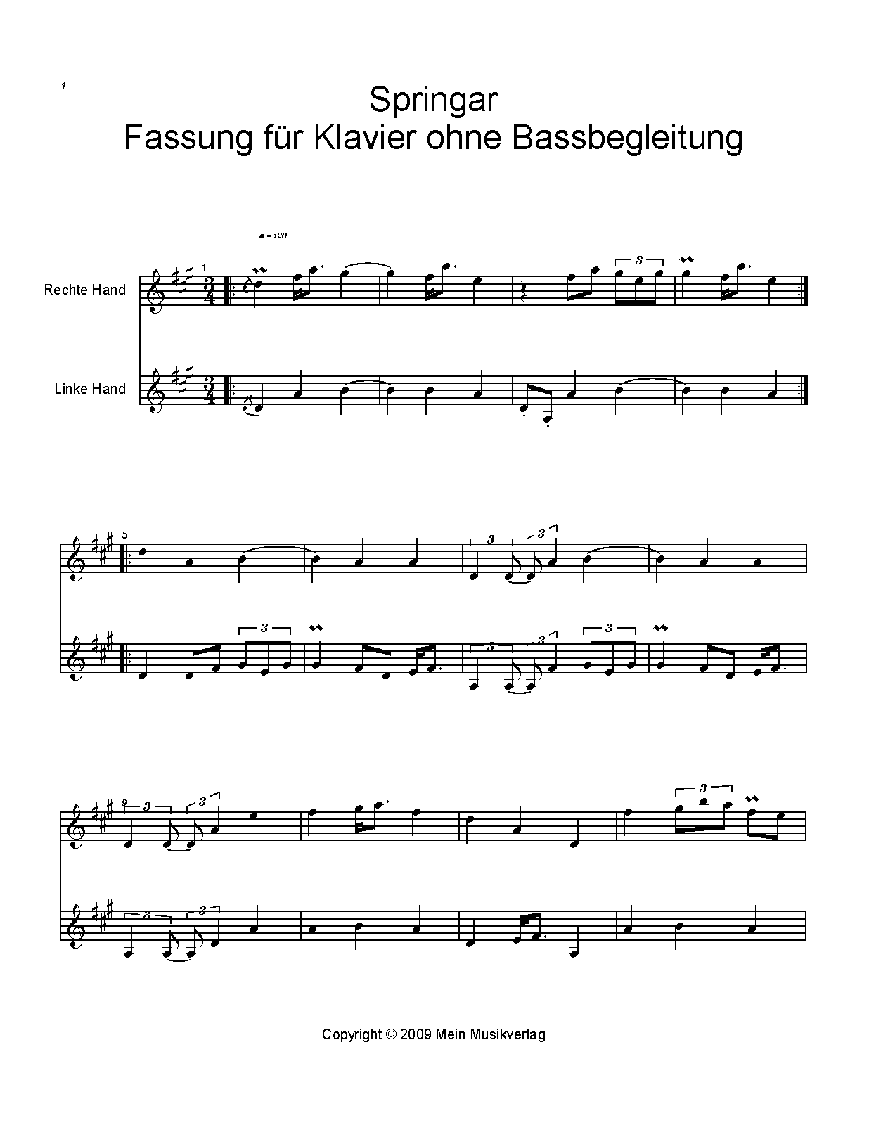 | Extra Information | This piece is written in the style of the norwegian folk music tunes. It has been strongly inspired by traditional norwegian folk music and by Edvard Grieg´s arrangements of this kind of music. It exists in 2 piano versions and in one version for violin or Norwegian Hardanger fiddle (scordatura tuning ADae). |