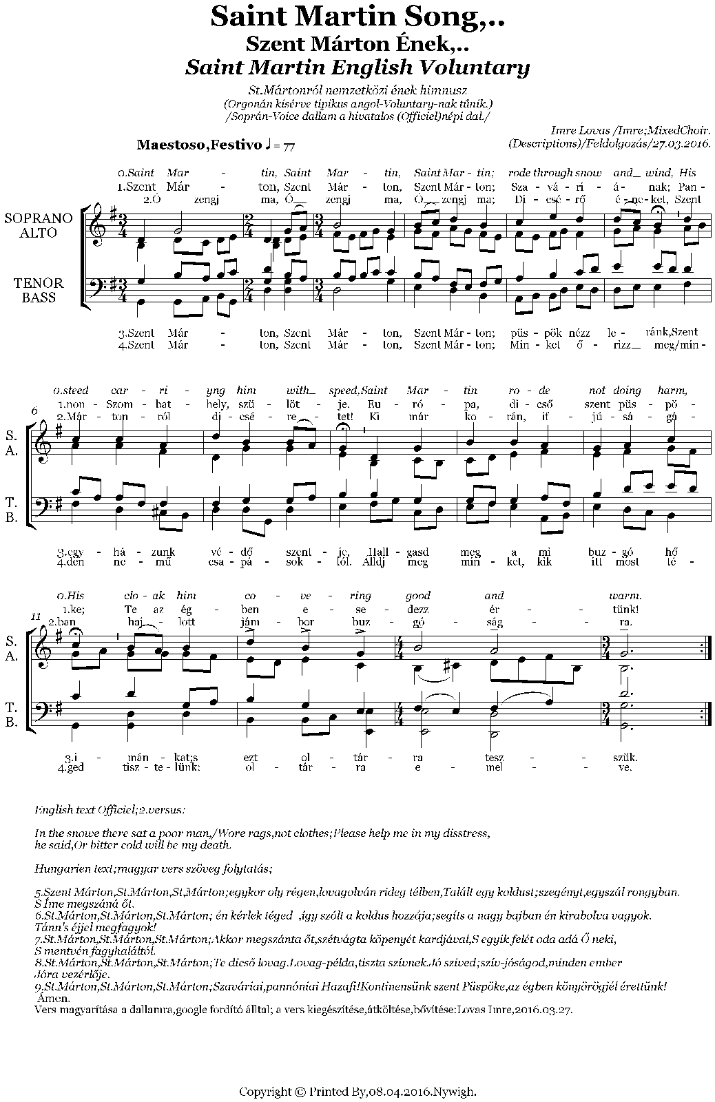 | Alternative. Title | Szent Márton ének, Pannon-Szombathely szülötte ; St. Martin English Voluntary |