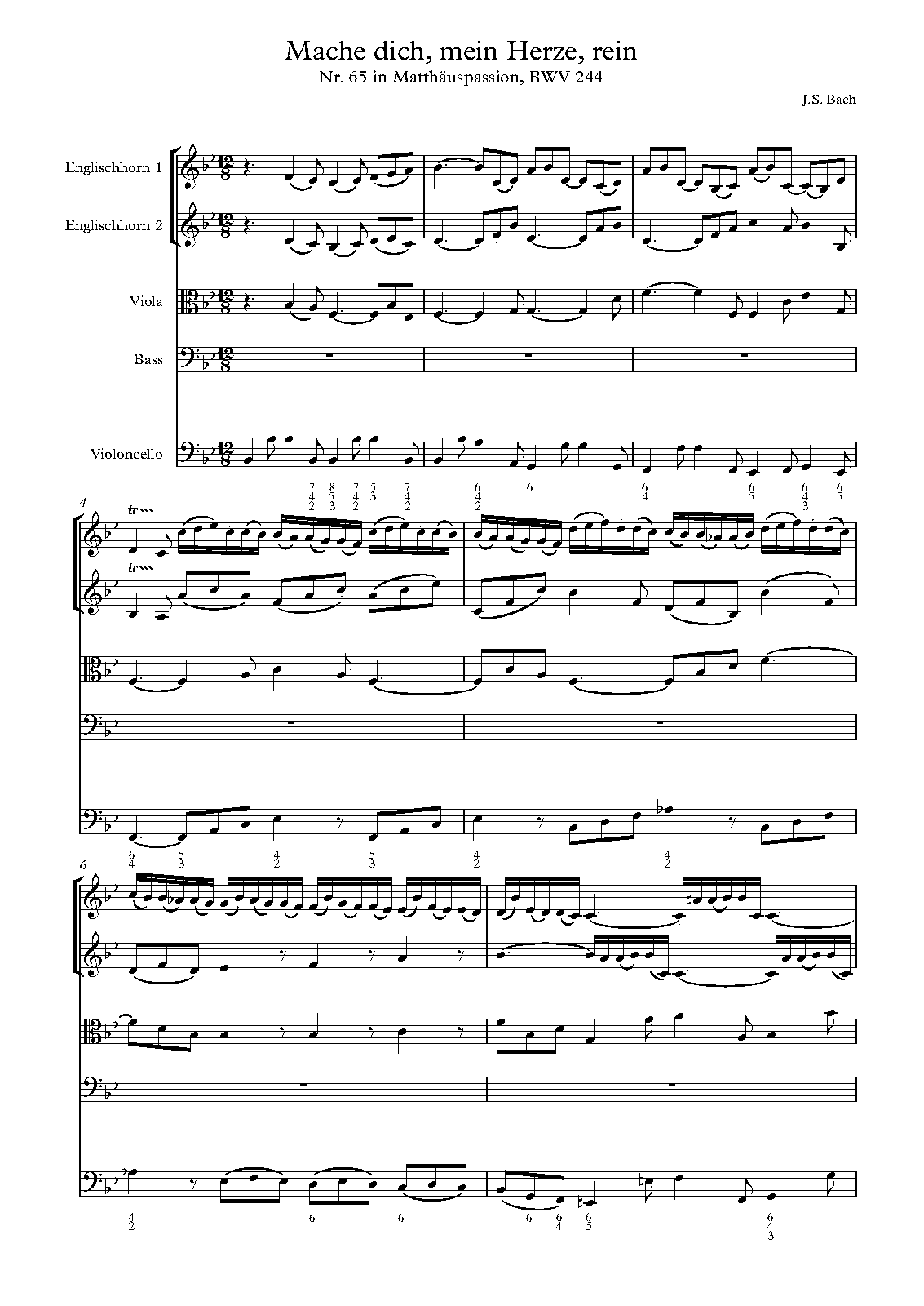 - 2 recorders, 2 flutes, 2 oboes (also both oboes d'amore and both oboes da caccia), [bassoon],