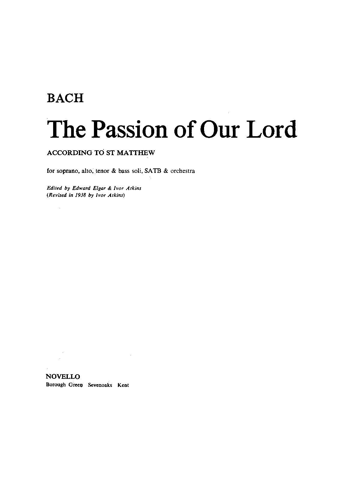 Passio Domini Nostri J.C. Secundum Evangelistam Matthaeum ; St. Matthew Passion