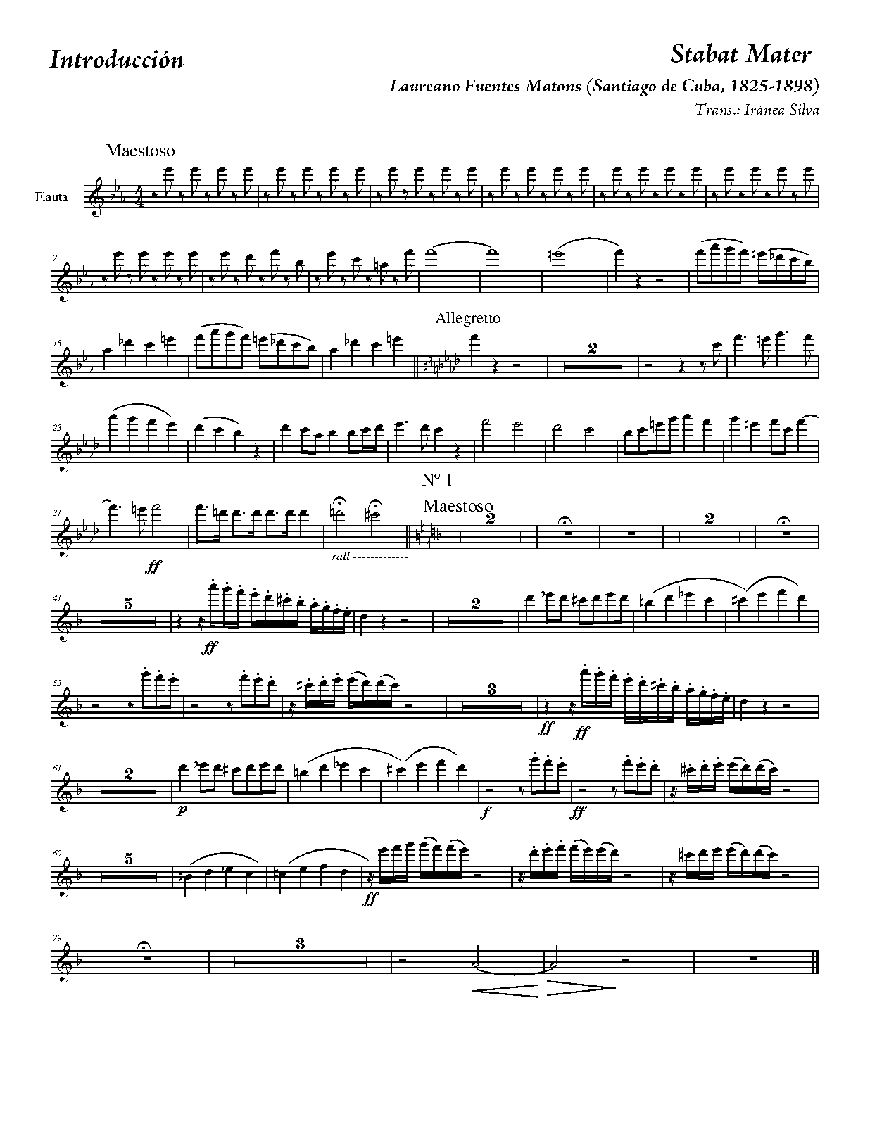 | Extra Information | Los manuscritos originales se localizan en la Biblioteca Elvira Cape de Santiago de Cuba (SBEC, Laureano Fuentes Matons). Los clarinetes y cornetines escritos originalmente en do, fueron transportados a sib para facilitar la lectura. |
