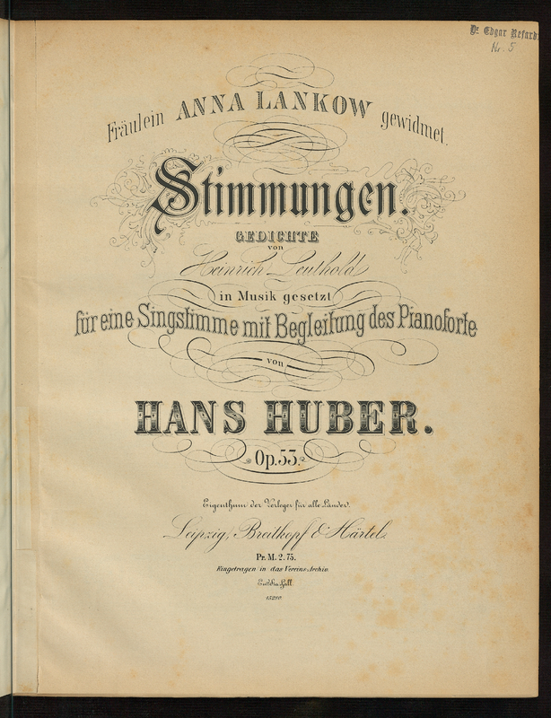 Gedichte von Heinrich Leuthold in Musik gesetzt für eine Singstimme Begleitung des Pianoforte