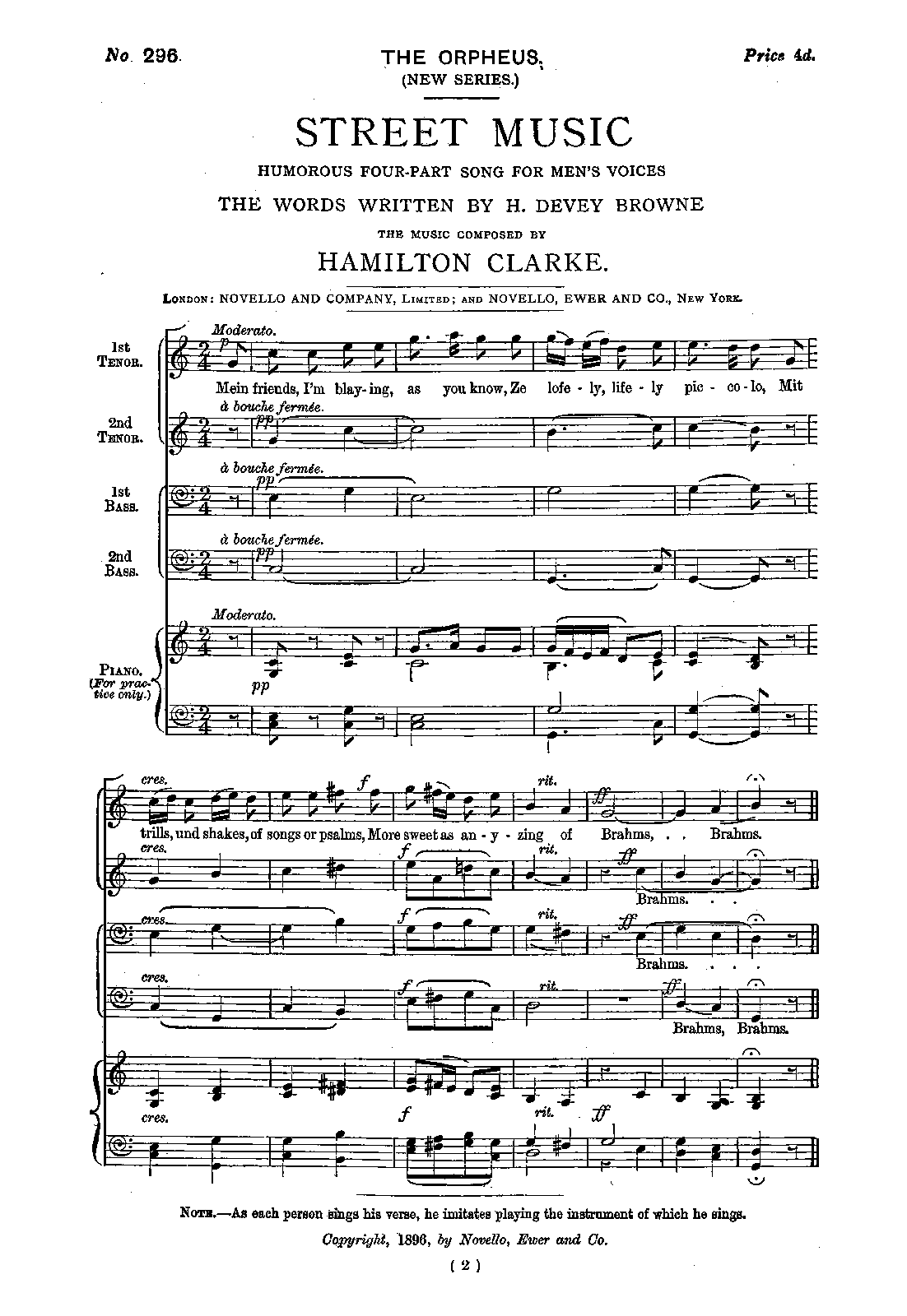 | Alternative. Title | Humorous Four-Part Song for Men’s Voices |