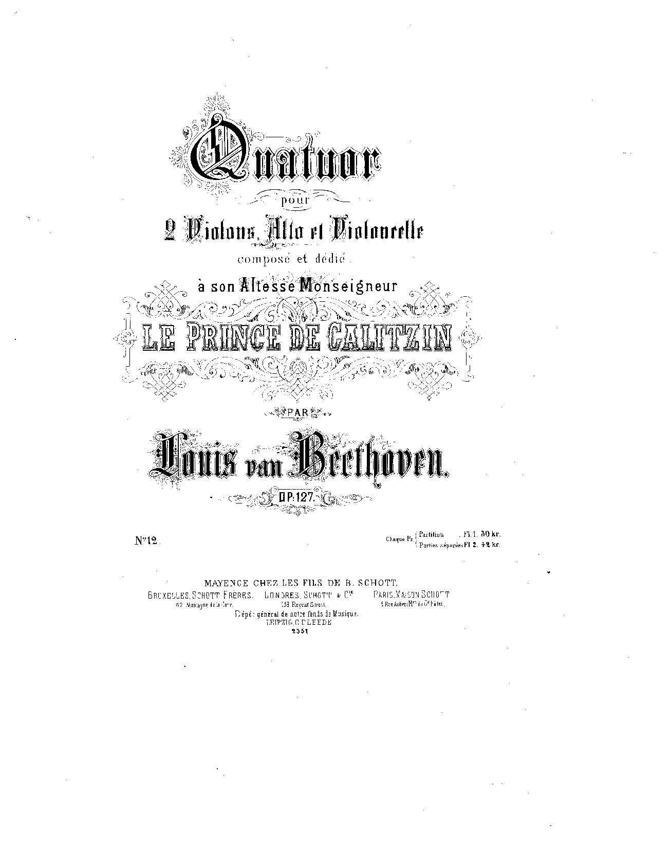 Name Aliases Streichquartett Nr. 12 Es Dur op. 127; String Quartet No. 12 in E-flat Major, Op. 127; Strijkkwartet nr. 12 (Beethoven); Cuarteto de cuerda n.º 12 en mi bemol mayor Op. 127