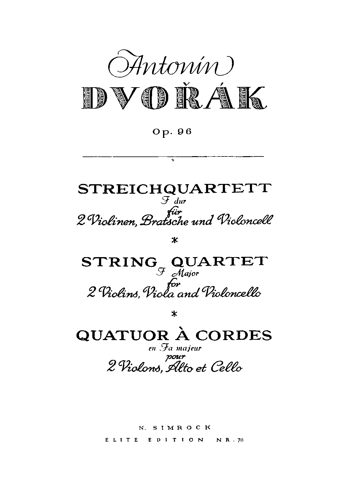 | Name Aliases | Quartett F-Dur für 2 Violinen, Viola und Violoncello op.96; op. 96; Streichquartett Nr. 12; Streichquartett F-Dur; String Quartet No. 12 in F Major, Op. 96, "American"; |