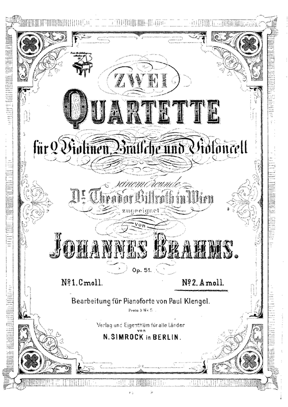Quatuor à cordes opus 51 nº 2 de Brahms; Quatuor à cordes nº 2 (Brahms); String Quartet No. 2 in A Minor, Op. 51, No. 2