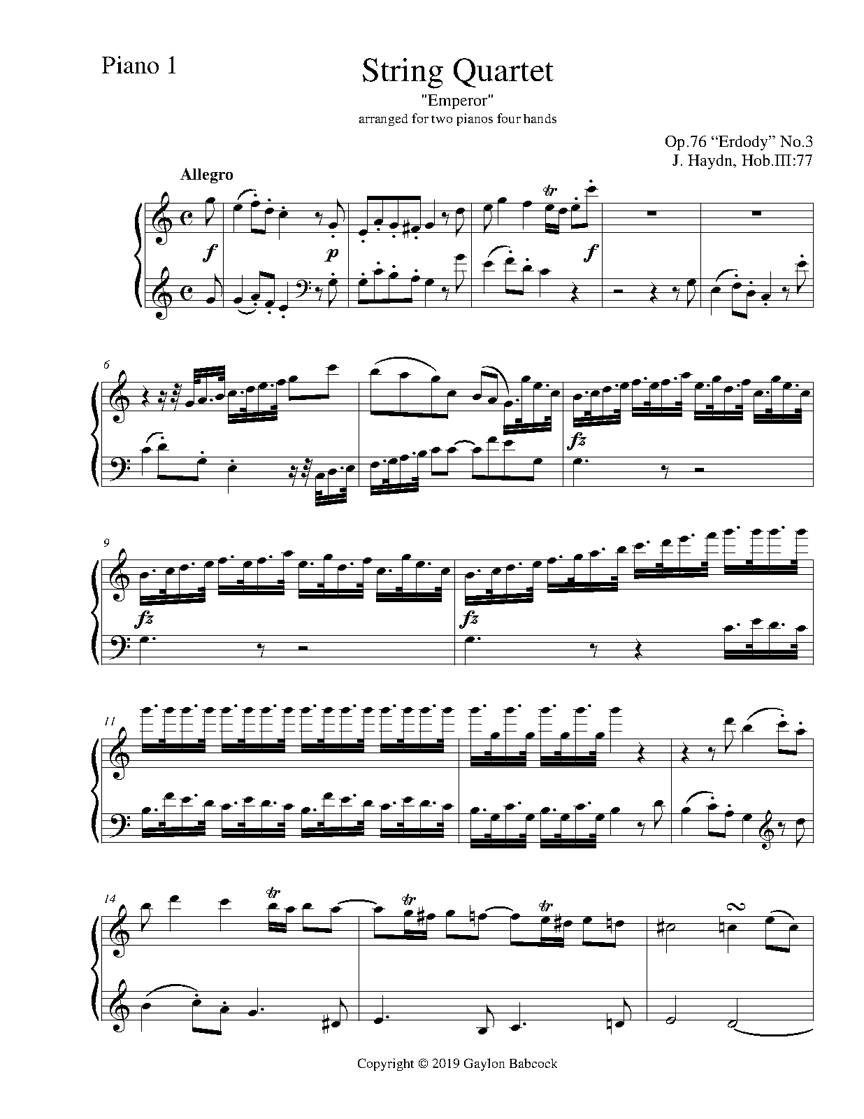 | Opus/Catalogue NumberOp./Cat. No. | Hob.III:77 ; Op.76 No.3 |