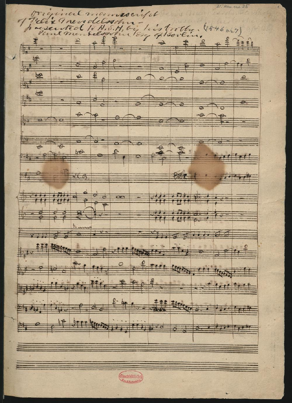 Holograph score, 1822-23. Mus.ms.autogr. Mendelssohn Bartholdy, F.6 (5) Holograph fragment, 1822-23. D-B, N.Mus.ms. 25