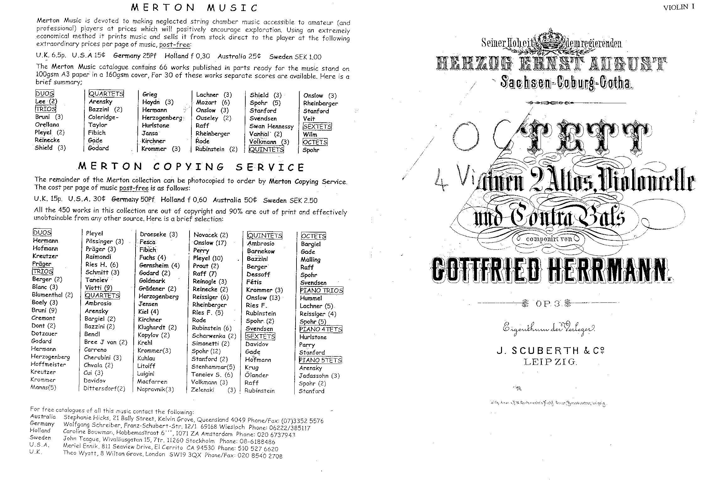 | Genre Categories | Octets; For 4 violins, 2 violas, cello, double bass; Scores featuring the violin; |