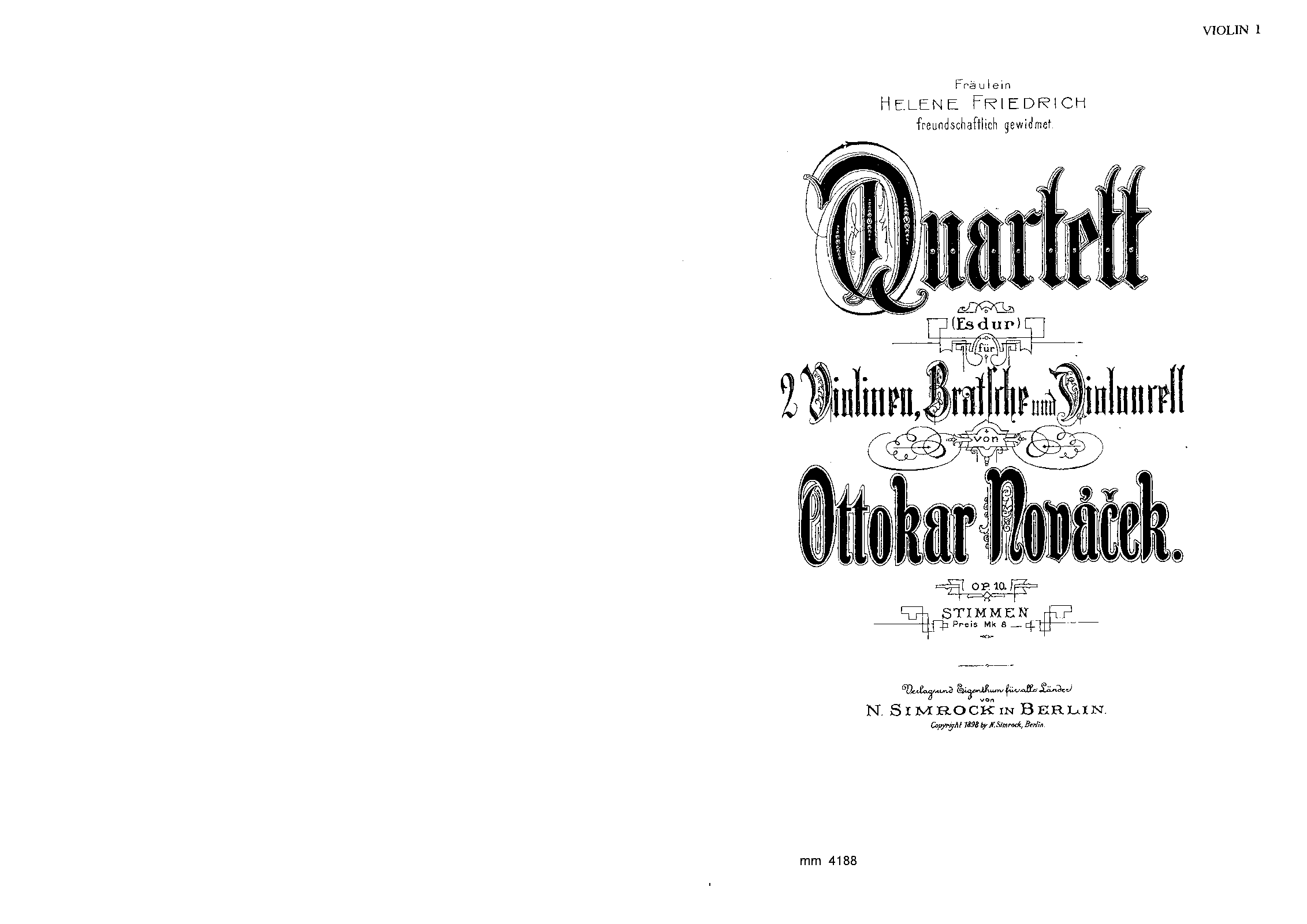 Berlin: N. Simrock, 1898. Plate 11093.