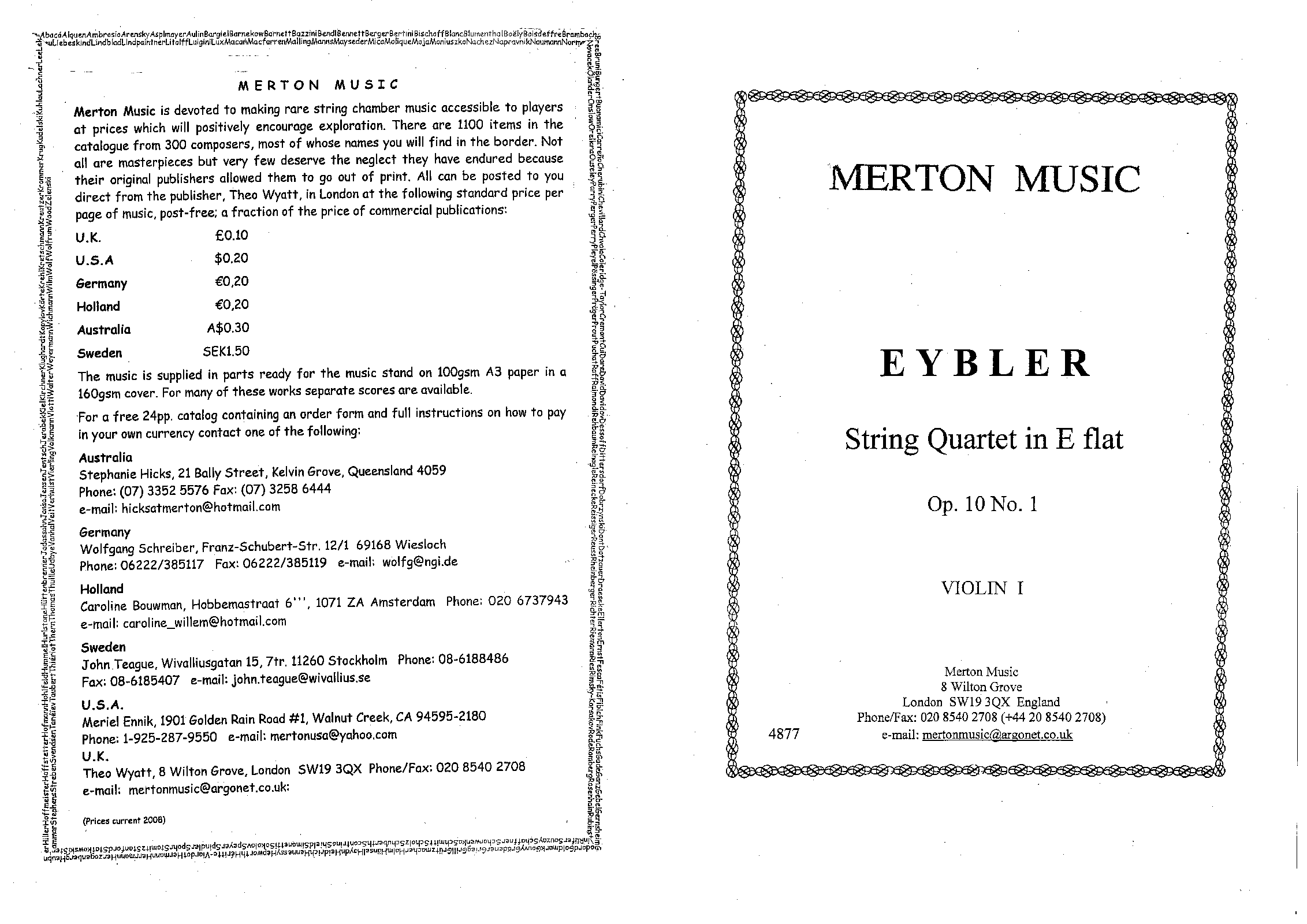 | Genre Categories | Quartets; For 2 violins, viola, cello; Scores featuring the violin; |