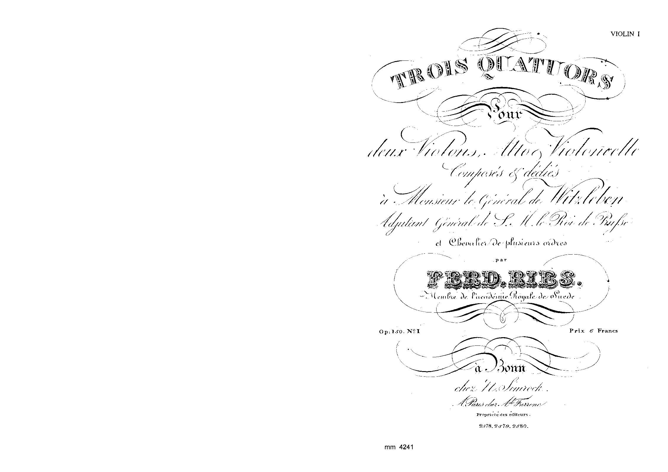 | First Publication. | 1829 (or earlier?), Bonn: Simrock |