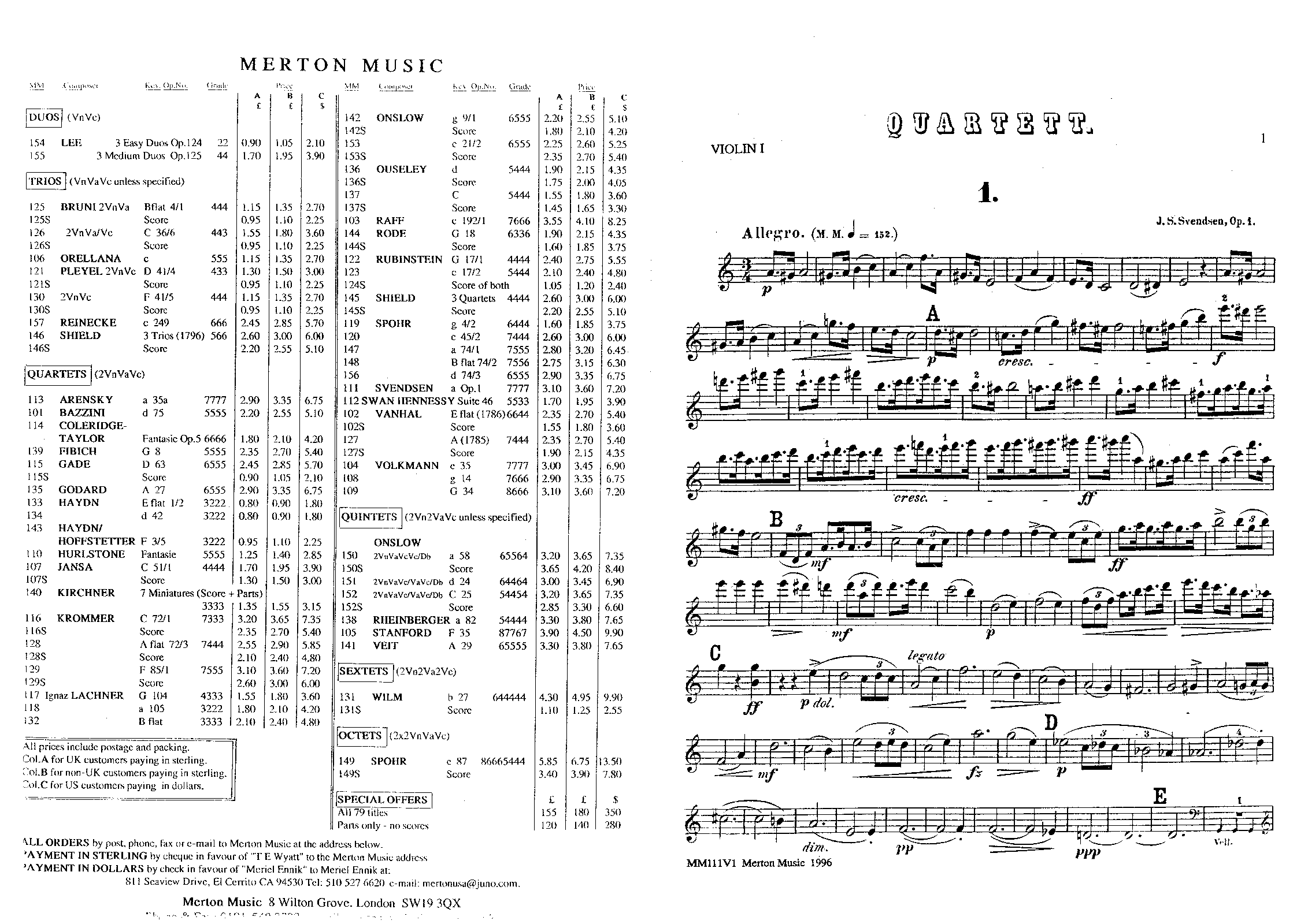 | Genre Categories | Quartets; For 2 violins, viola, cello; Scores featuring the violin; |