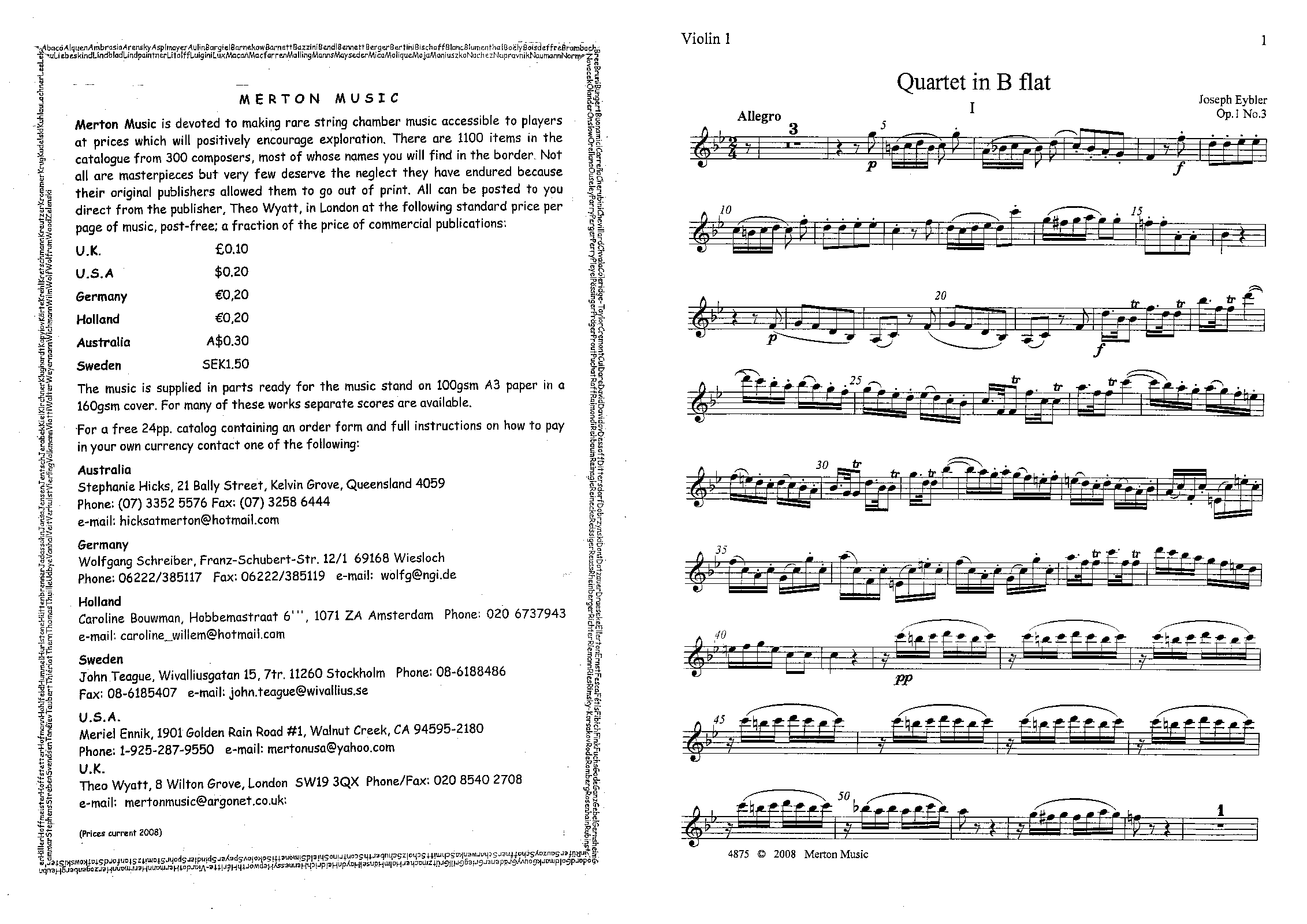 | Genre Categories | Quartets; For 2 violins, viola, cello; Scores featuring the violin; |